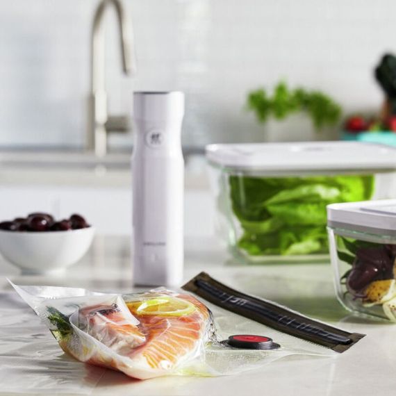 Avec cette Pompe Sous-vide FRESH & SAVE, Zwilling, propose un outil révolutionnaire : sur simple pression d'un bouton, cette pompe vous offre la fraicheur garantie ! Fini les pompes/machines sous vides encombrantes et lourdes et fini le gaspillage de nourriture !