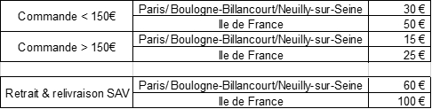 - Délai : colis livré entre 2 et 5 jours ouvrables, selon le transporteur et la date de rendez-vous choisi.