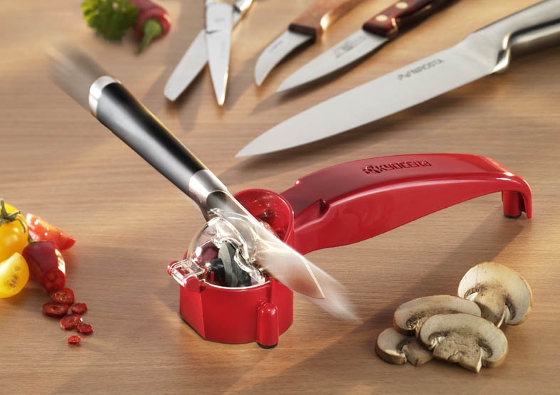 Grâce à ses deux roulettes en céramique, il est idéal pour remettre à neuf les couteaux à lame en acier inoxydable, en toute sécurité.