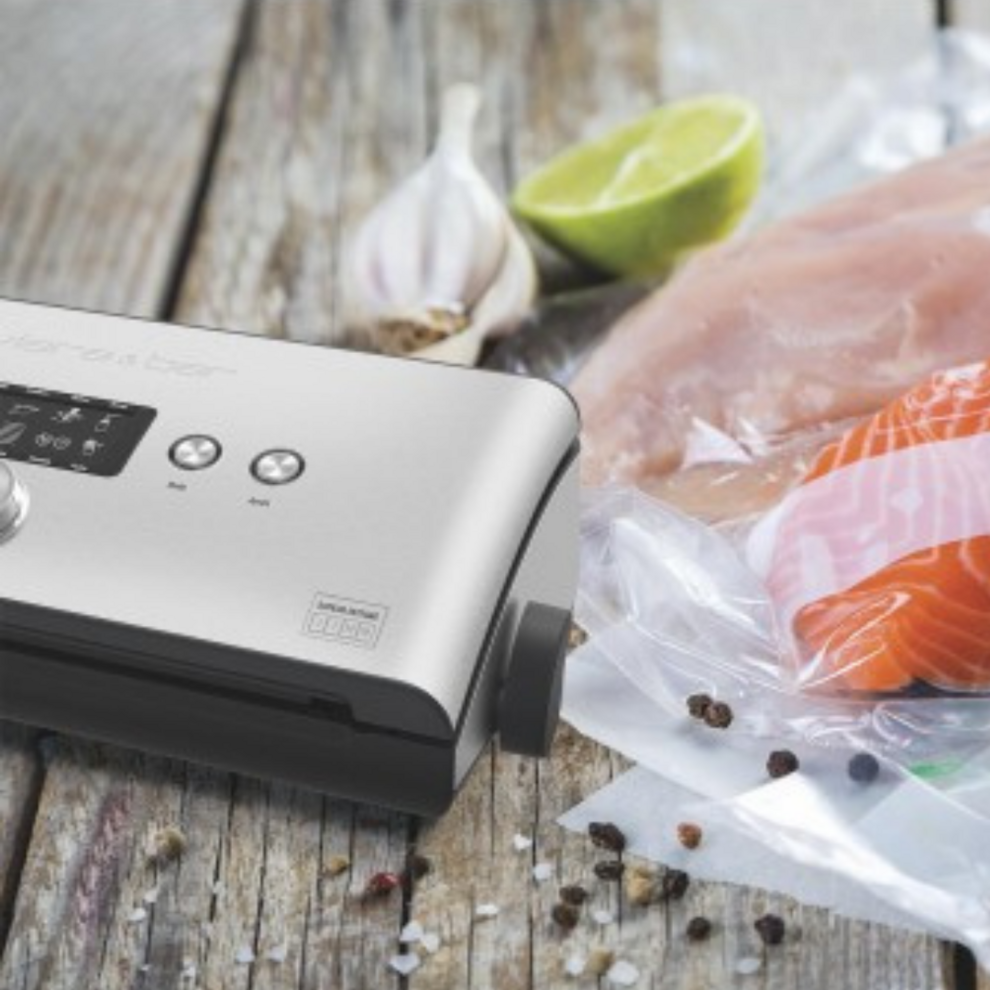 En finition inox et revetement anti-tâche, le design de cette machine sous vide est novateur. Sa molette Easy Select permet de séléctionner vos programme d'une seule main. Les joints de fermetures sont d'une qualité supérieur et confère à la machien sous-vide une durée de vie allongée.