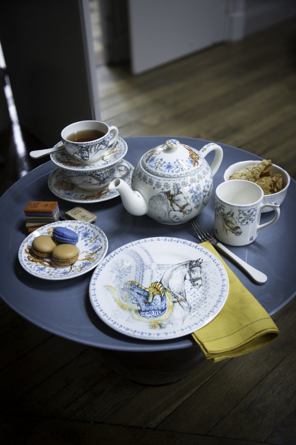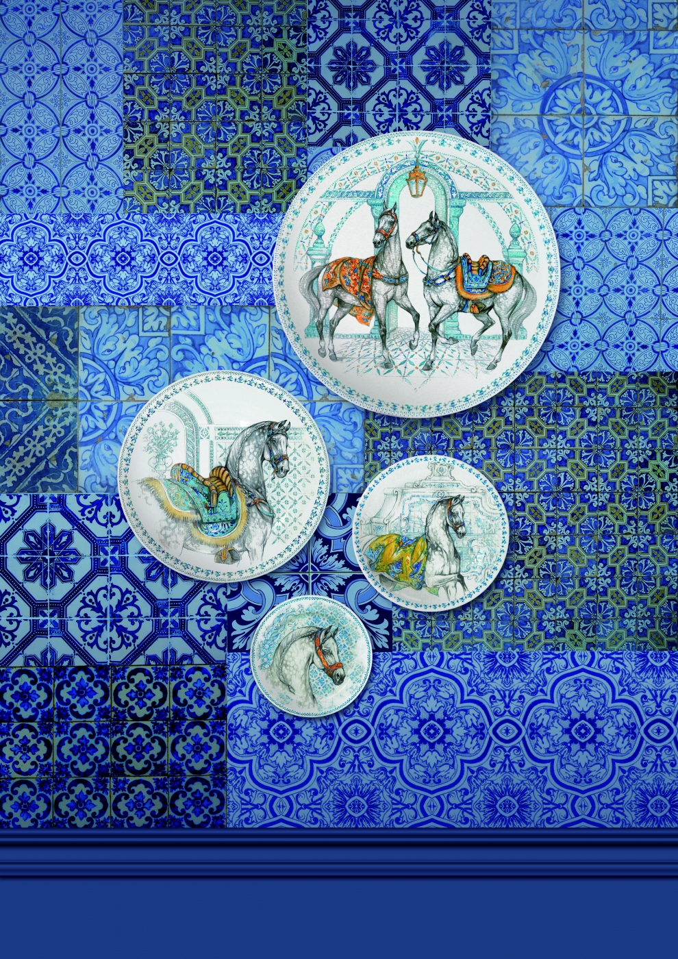 Assiettes dessert cheval bleu Chevaux du soleil