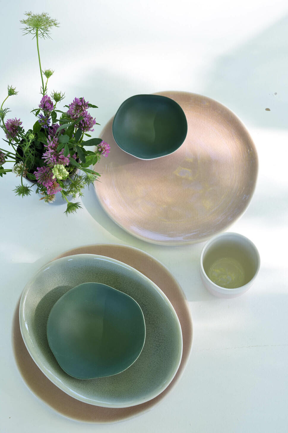 L'assiette ronde L tamaris de la collection Maguelone de Jars est une assiette parfaite-imparfaite de 26,5 cm de diamètre aux lignes irrégulières. La forme organique et délicate de cette pièce sont un délicat rappel à la main du céramiste.
