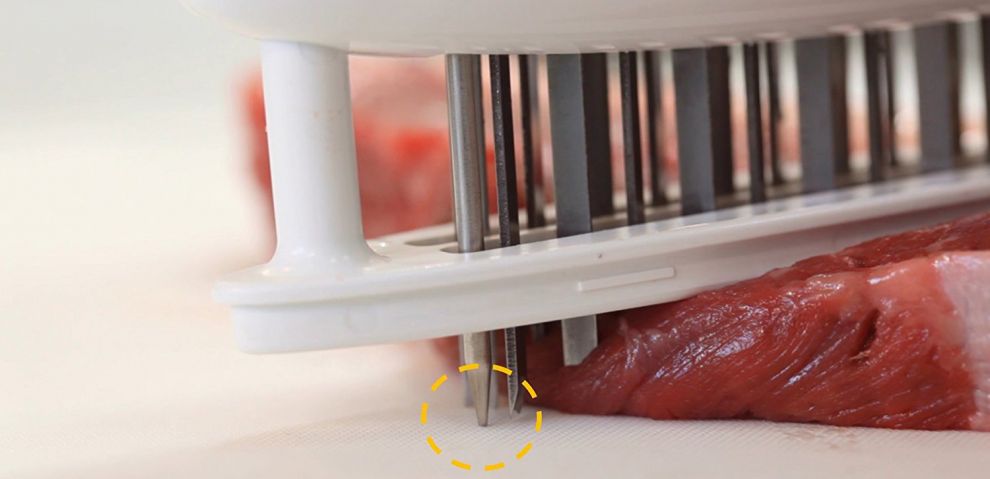 Un attendrisseur à viandes qui permet d'accélérer le temps de cuisson. Le fabricant Chroma estime une économie d'énergie de 40 %. Il permet d’adoucir les fibres de la viande, ce qui la rend plus savoureuse. Cela vous offre une cuisson homogène, sans perte de jus.
