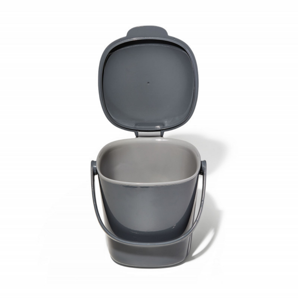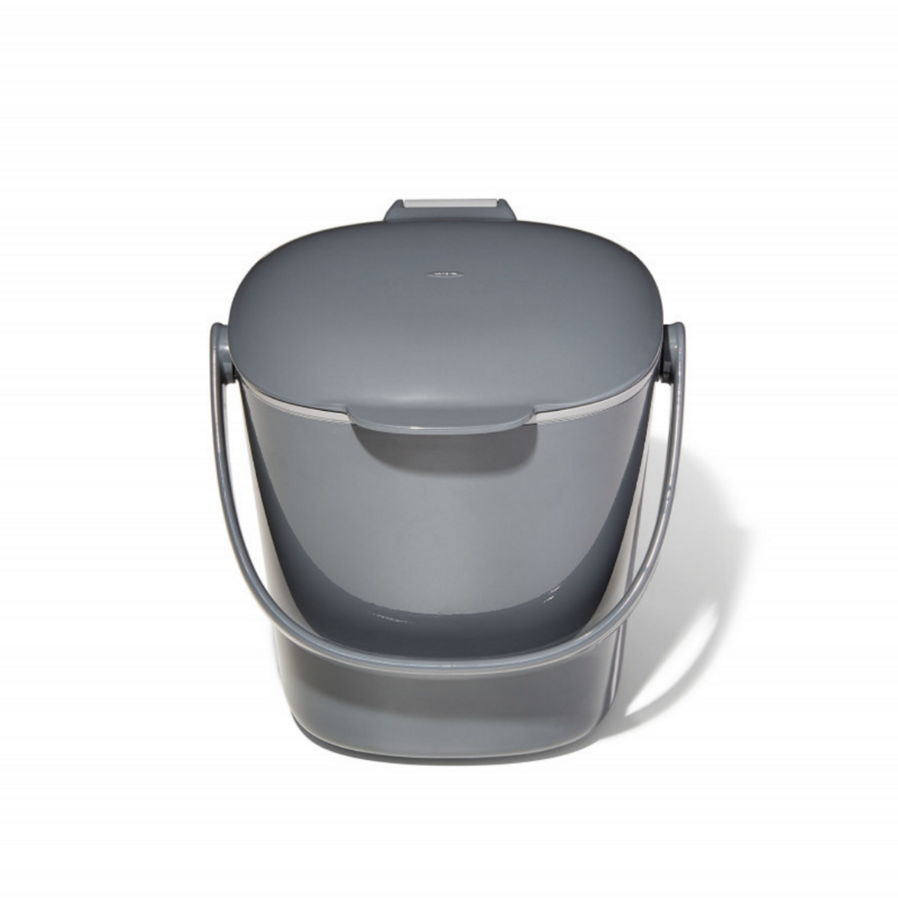 Le bac à compost de cuisine blanc OXO est un composteur compact, hermétique et sans odeur.