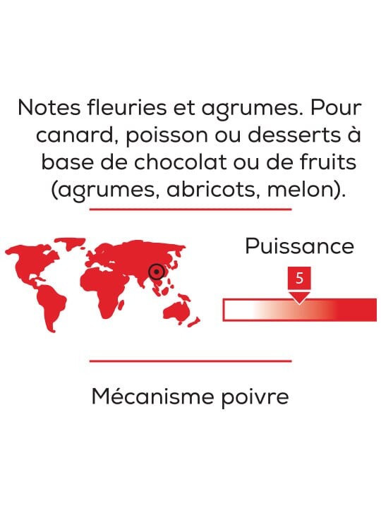 Graines de poivre de Sichuan rouges de Chine. Puissant et aromatique avec des notes florales et des notes d'agrumes. Verre aromatique refermable avec 27 g de poivre de Sichuan
