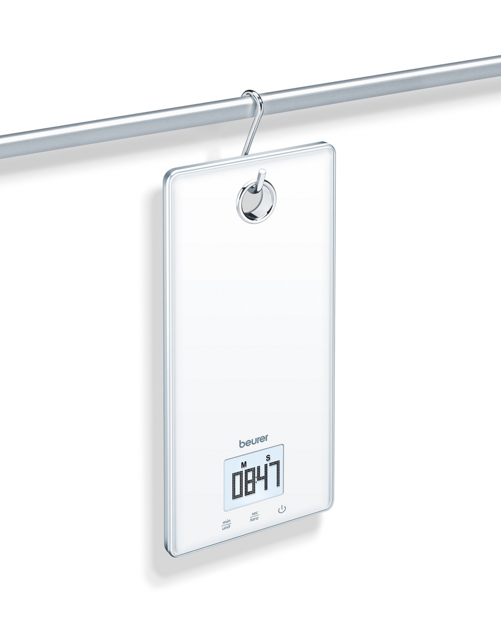 Cette balance de cuisine dispose d’un crochet pour vous permettre d’accrocher votre balance au mur de votre cuisine.