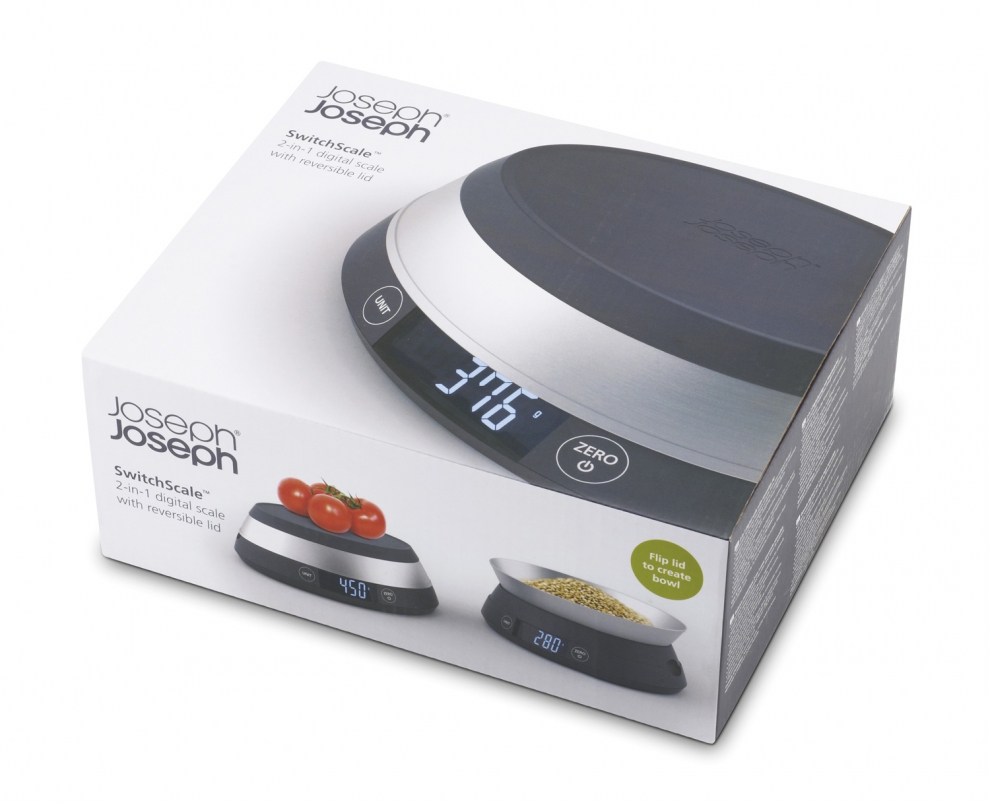 La Balance digitale 2en1 SwitchScale de Joseph Joseph est une balance très pratique multifonctions qui vous accompagnera dans toutes vos recettes.