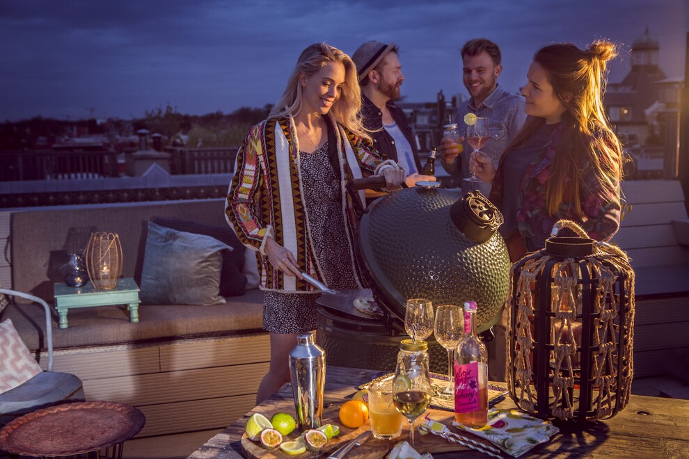 " Parfait pour les soirées barbecues " est la devise du Big Green Egg Large, le plus populaire des 6 modèles de la gamme. Avec sa grille de cuisson d'un diamètre de 46 cm, vous pouvez cuire sur une surface totale de 1 688 cm2.
