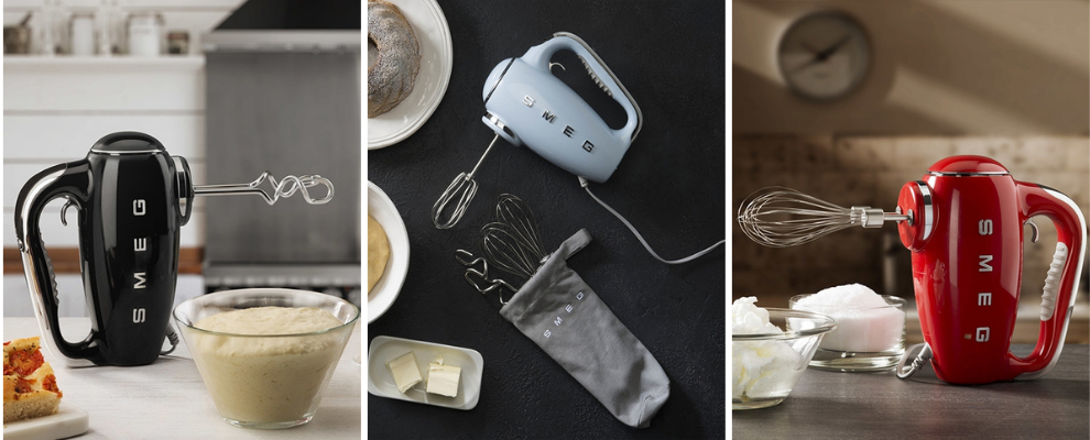 Découvrez le batteur à main Vintage SMEG de la gamme "Année 50", doté d'un écran LED et fourni avec trois différents types de fouets, il sera votre meilleur allié en cuisine !