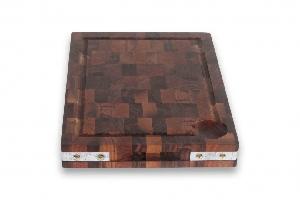 Ce plateau de découpe, avec sa rigole ramasse jus, est idéal pour accueillir volailles, rôtis et gigots tout juste sortis du four. Vous pourrez également travailler tous les morceaux de viande crus avec la même dextérité que sur un étal de boucher. Chocs et coups de lame n'entameront jamais le bois de cet article d'exception dont l'esthétisme n'enlève rien à l'extrême robustesse.