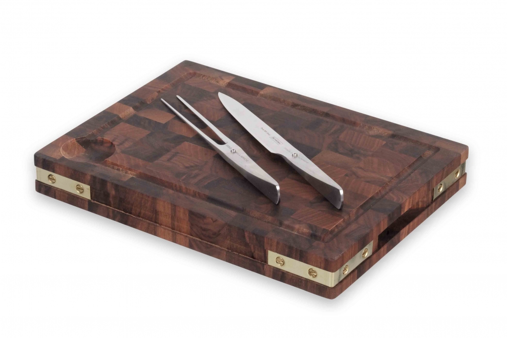 Chaque produit Chabret est fabriqué artisanalement avec du bois français sélectionné dans les plus belles forêts du Jura. Le bois de noyer est apprécié pour sa robustesse. L'utilisation du bois de bout garantit une résistance totale aux coups de lame. La planche ne se fend pas et ne marque pas. Elle reste totalement lisse année après année, ce qui garantit des conditions d'hygiène parfaites en totale conformité avec la norme NF Alimentaire.