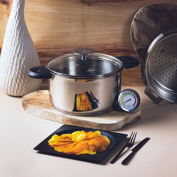 - Un panier vapeur en inox 18/10(⇏ du cuit vapeur Cristel)