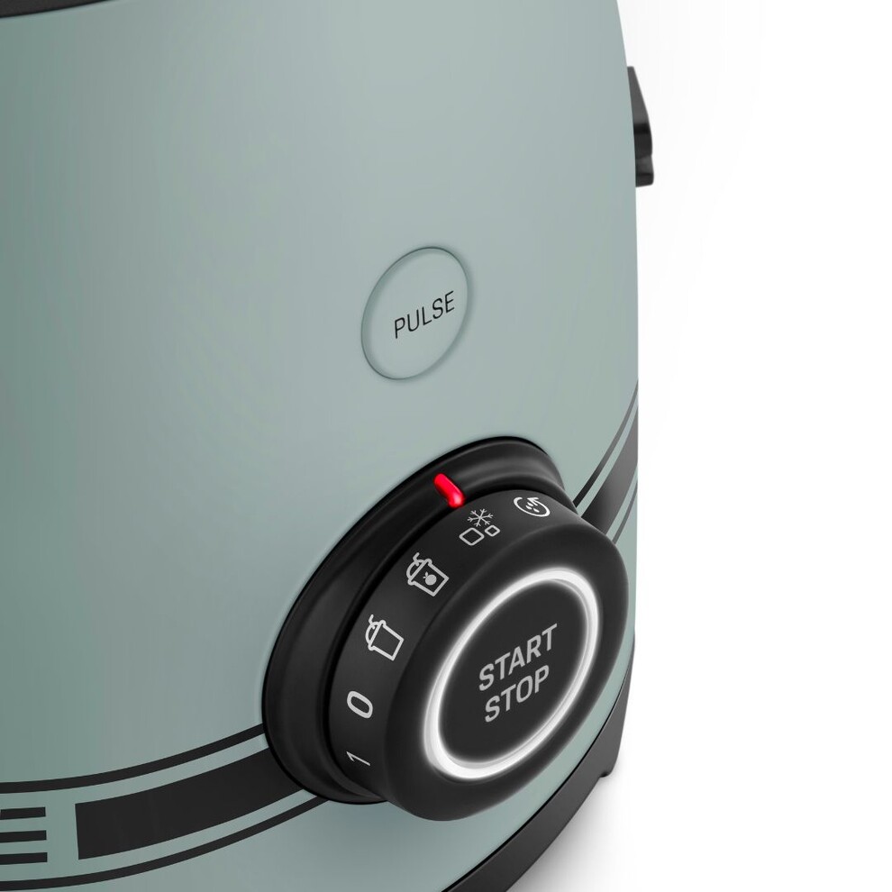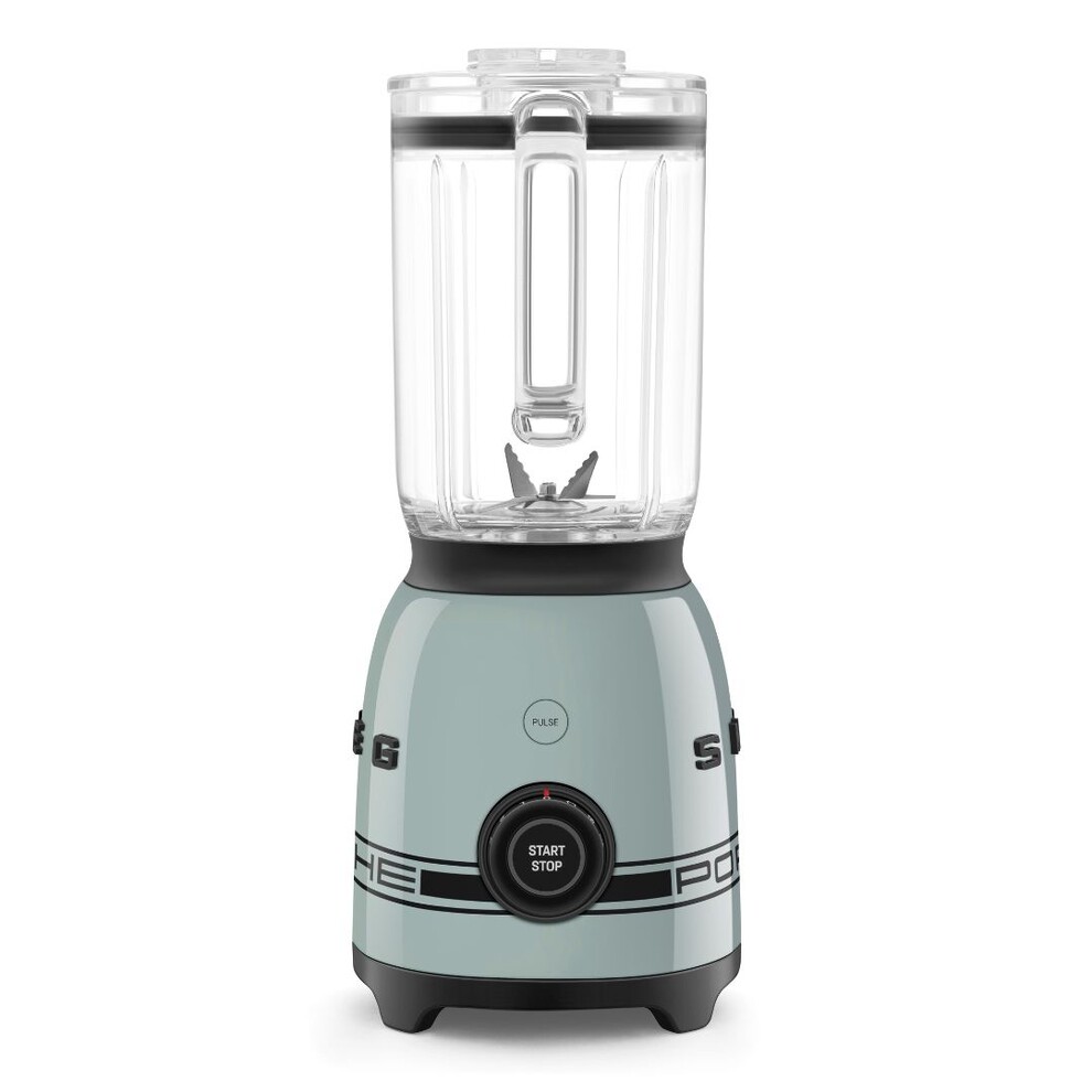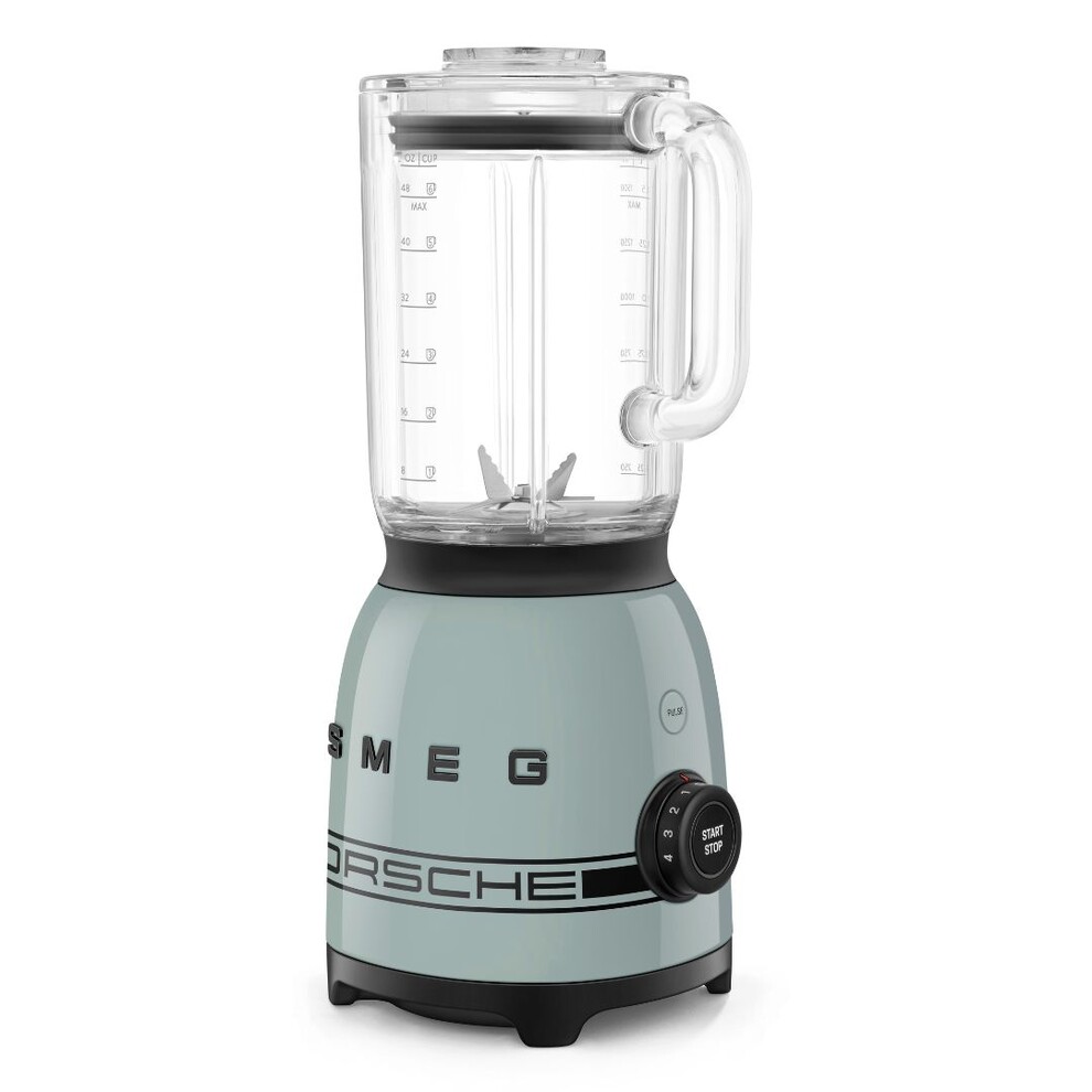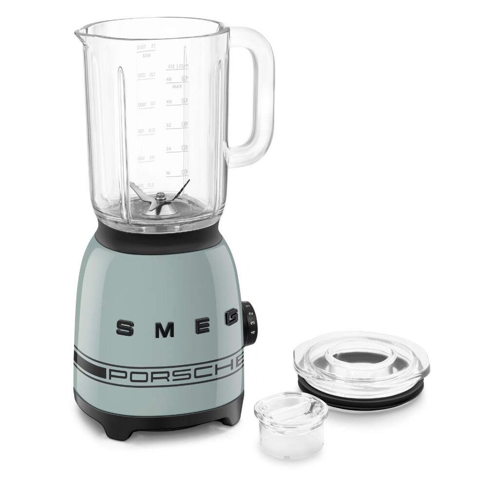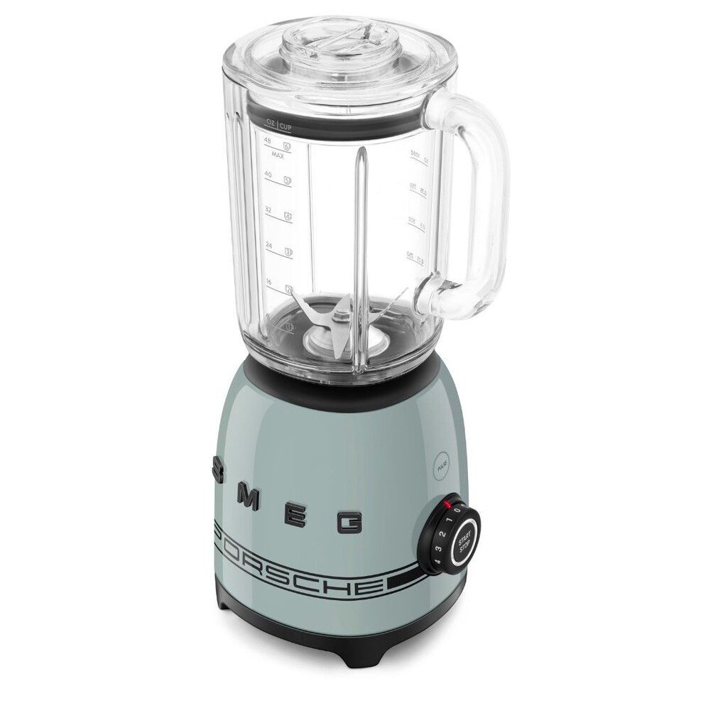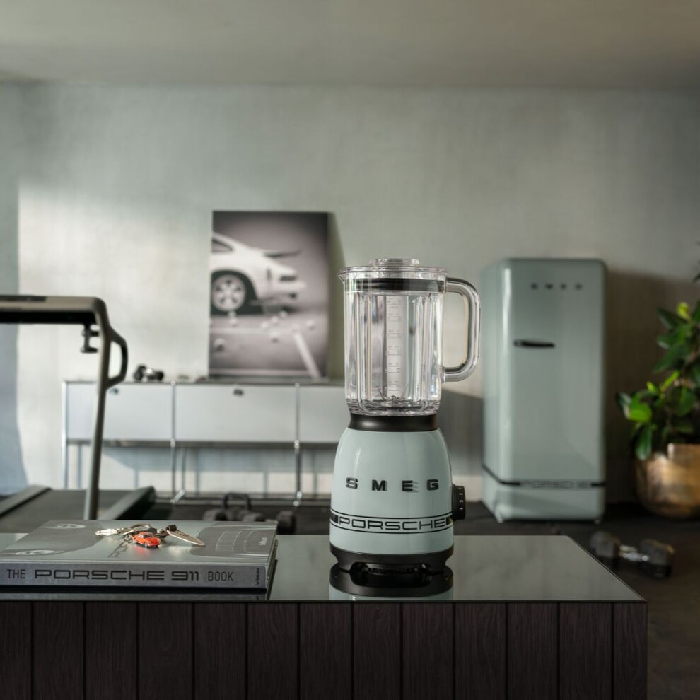 Ce mixeur allie le style rétro de Smeg et le design épuré de Porsche. Les accents noirs mats sur le socle, le bouton et le bol, associés à la bande signature Porsche, créent un objet élégant et technique.