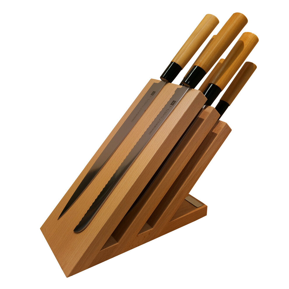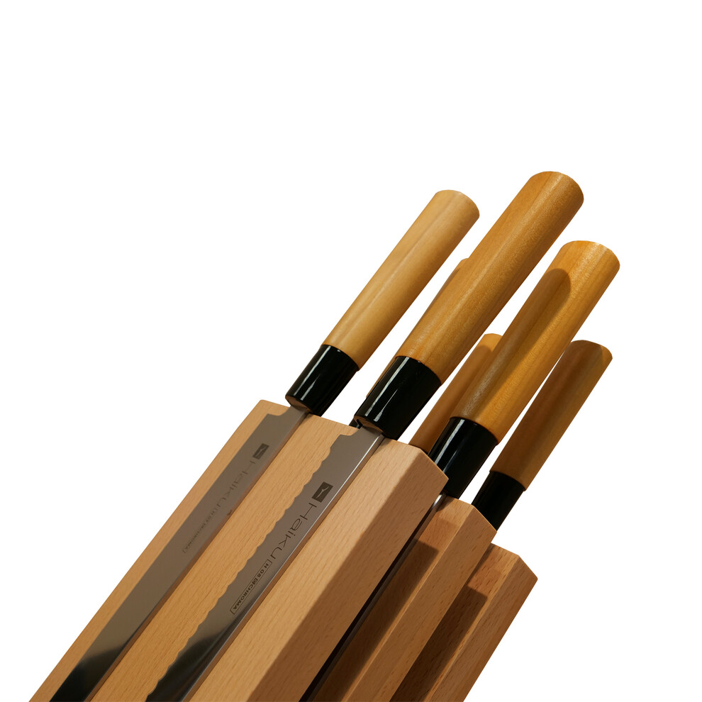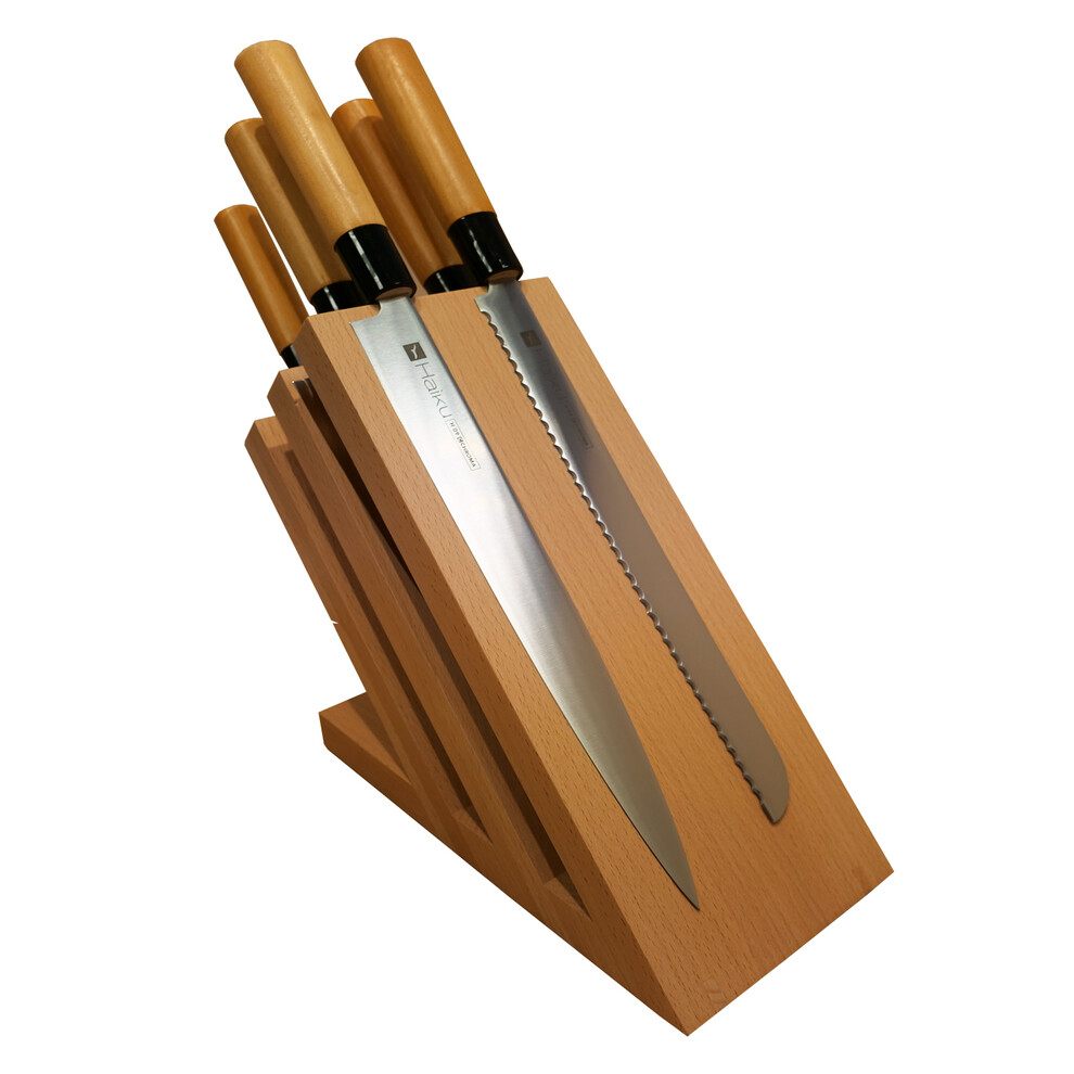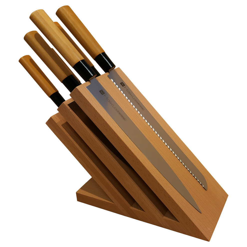 Bloc à couteaux en hêtre aimanté tout équipé de 6 couteaux Haiku Original