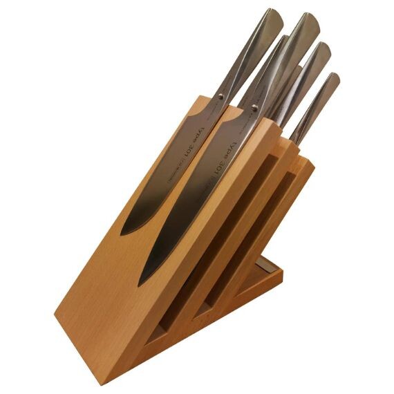 Découvrez le Bloc aimanté Artelegno 6 emplacements en bois de hêtre équipé de 6 couteaux de la gamme Type 301 .