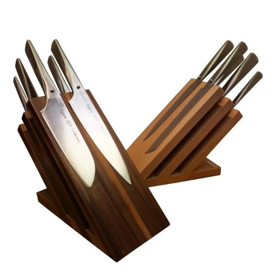 Bloc à couteaux en noyer aimanté tout équipé de 6 couteaux TYPE302