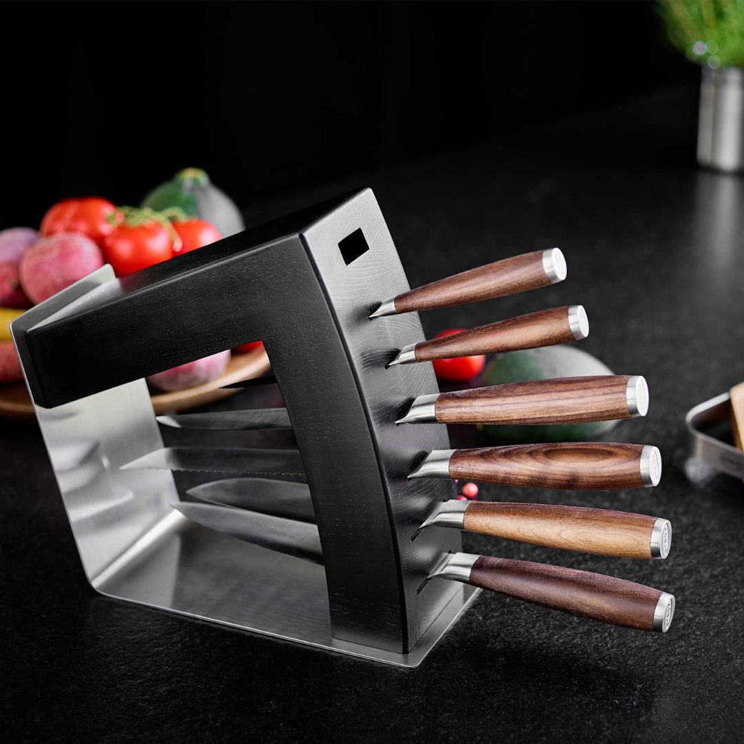 Ce bloc couteau accrochera l'oeil dans votre cuisine. Il est élégant mais aussi hyper polyvalent. Il ne prend pas beaucoup de place dans votre cuisine, peu importe sa taille. En effet, il peut être stocké en position verticale et horizontale. Le bloc de couteau en bois de frêne durable est parfait pour ranger facilement vos couteaux de haute qualité et perserver le tranchant de vos lames.