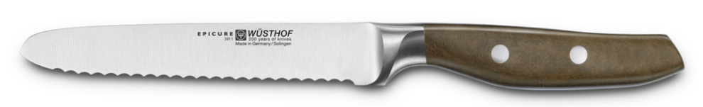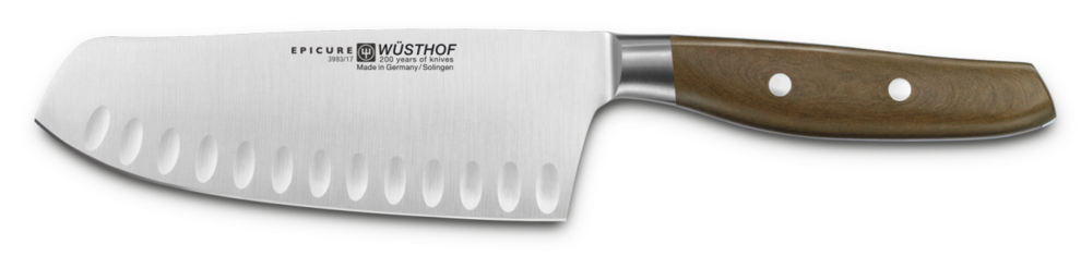 Les couteaux de la collection Epicure de la marque Wüsthof sont dessinés par le designer industriel Björn Berger en Allemagne. La collection est forgée avec une grande précision et présente une nouvelle forme avec des lignes modernes et dynamiques. La conception du manche est en fibres et résine naturelles. Il associe la douceur au toucher du bois à la robustesse et aux avantages hygiéniques du plastique. Il s’inscrit ainsi dans la tradition d’EPICURE : combiner le meilleur de mondes différents tout en donnant la priorité à l’environnement avec une production zéro émission.