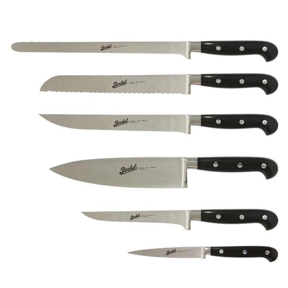 Le Set de couteaux multifonctions vous permets de ne pas vous tromper de couteau lorsque vous souhaitez trancher une viande, couper du pain ou du poisson. Les couteaux d'office et de cuisine sont indispensables pour réaliser une large gamme de préparations. Les porte-couteaux est une pièce artistique à elle seule et complètera parfaitement votre cuisine. |