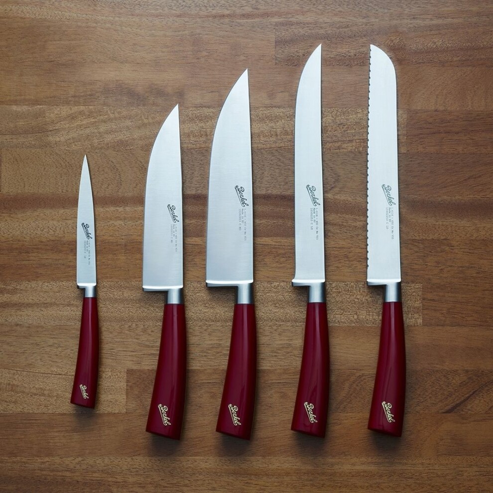 Bloc En Cuir Rouge Avec 5 Couteaux Elégance