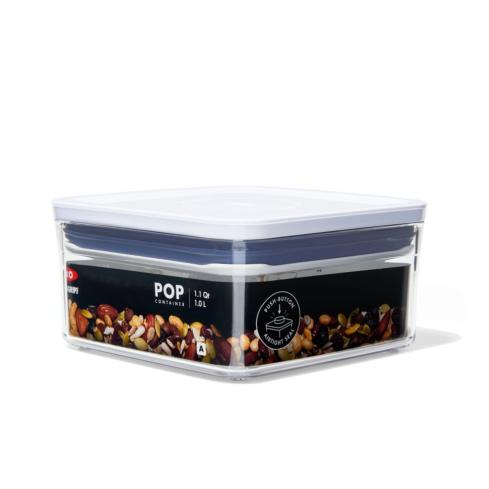 La gamme de boîtes de conservation POP de OXO sont étanches, empilables et économes en espace. Ces dernières vous permettent de conserver vos aliments aussi bien frais que secs et d'organiser votre espace de cuisine.