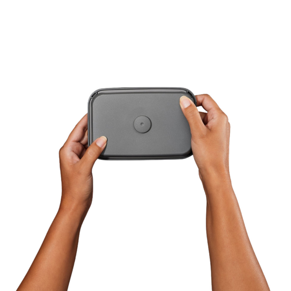 Un mécanisme unique de bouton à poussoir scelle votre couvercle sans effort, et peut aussi vous servir de poignée pour soulever le contenant.