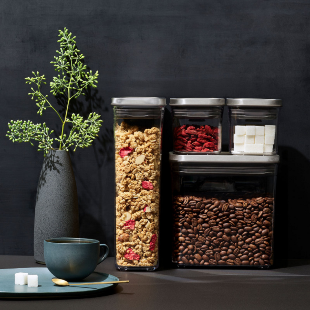 Vous connaissez la gamme de boîtes de conservation POP de OXO ? Découvrez les boîtes de conservation finition inox ! Élégante et raffinée, leur design s'adapte aisément à tous les styles de cuisine, notamment les plus contemporaines. Un design revisité certes mais des fonctionnalités inchangées ! Étanches, empilables et économes en espace, ces dernières vous permettent de conserver vos aliments aussi bien frais que secs et d'organiser votre espace de cuisine.