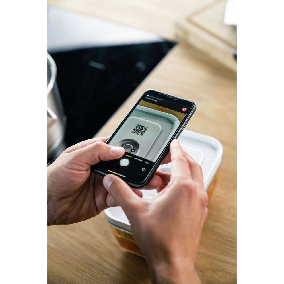 Le QR apposé sur le couvercle vous donne accès à l'application ZWILLING Culinary World , qui vous permet de suivre facilement la durée de conservation des aliments dans les boîtes.