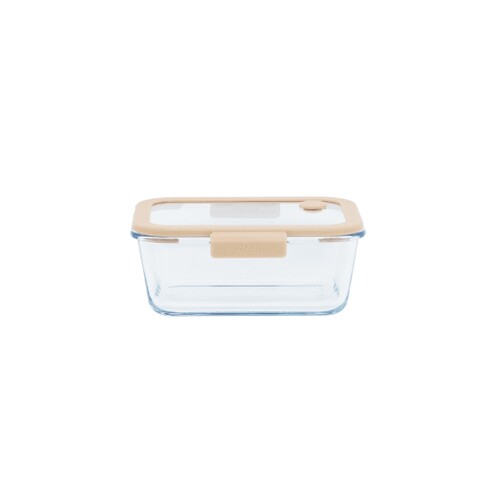 Plat rectangulaire en verre 0,8L effet ceramique avec couvercle en verre et silicone - Creme