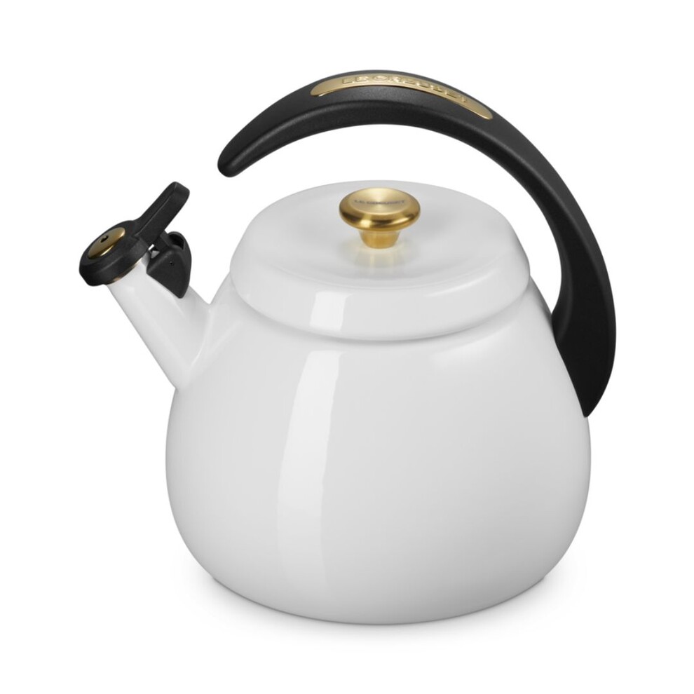 Avec sa capacité généreuse de 2,1 litres, cette bouilloire sifflante incarne l'alliance parfaite entre un design raffiné et une fonctionnalité optimale. Son esthétique se distingue par une couleur éclatante et un bouton de couvercle en inox brossé orné d'un logo argenté ou doré. Une large base assure une chauffe rapide et uniforme, tandis que sa poignée fixe en forme d'auréole, qui reste froide au toucher, garantit une prise en main confortable et sûre.