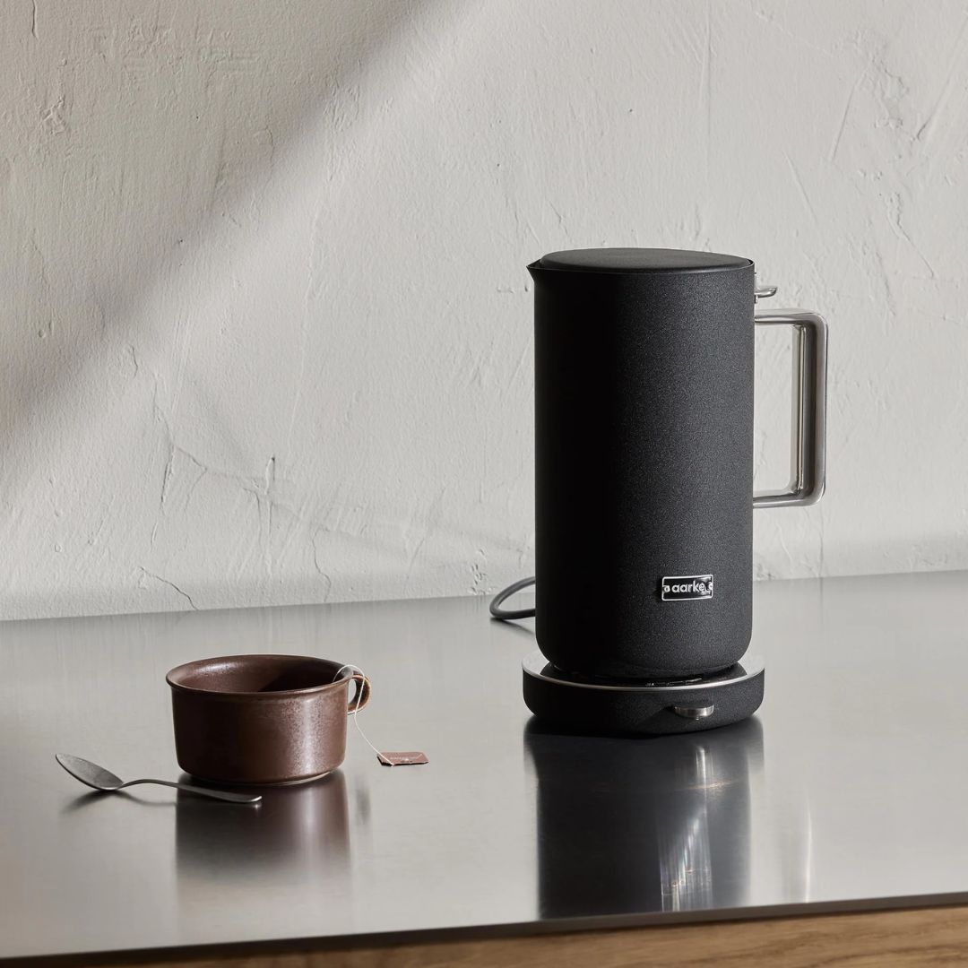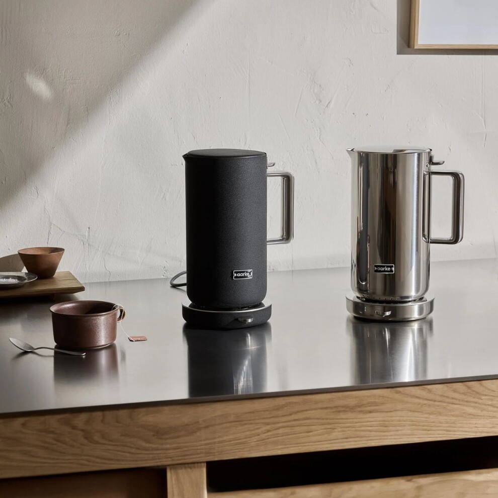 La bouilloire Aarke est réglable en température, avec des paliers de 40°C à 100°C et un indicateur LED de refroidissement pratique.