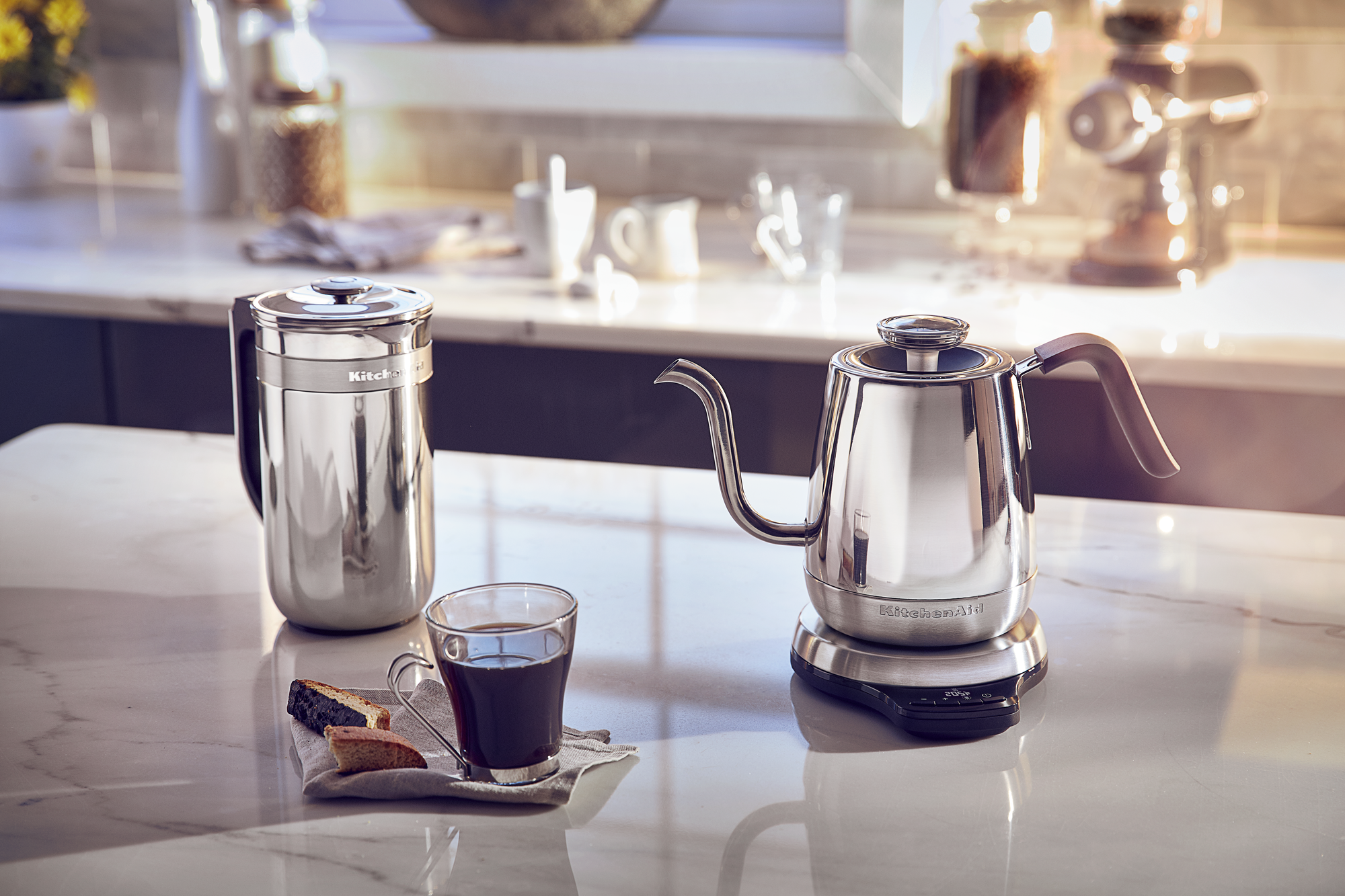 C'est pourquoi la bouilloire numérique à bec col de cygne de KitchenAid est idéale ! Bouilloire de précision, elle offre un réglage précis de la température de l'eau, par palier de 1°C de 60 à 100 degrés