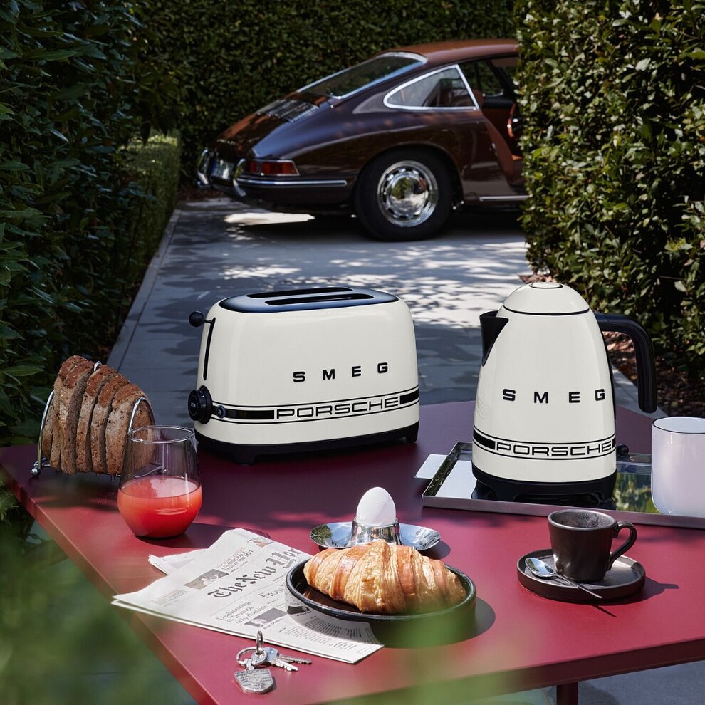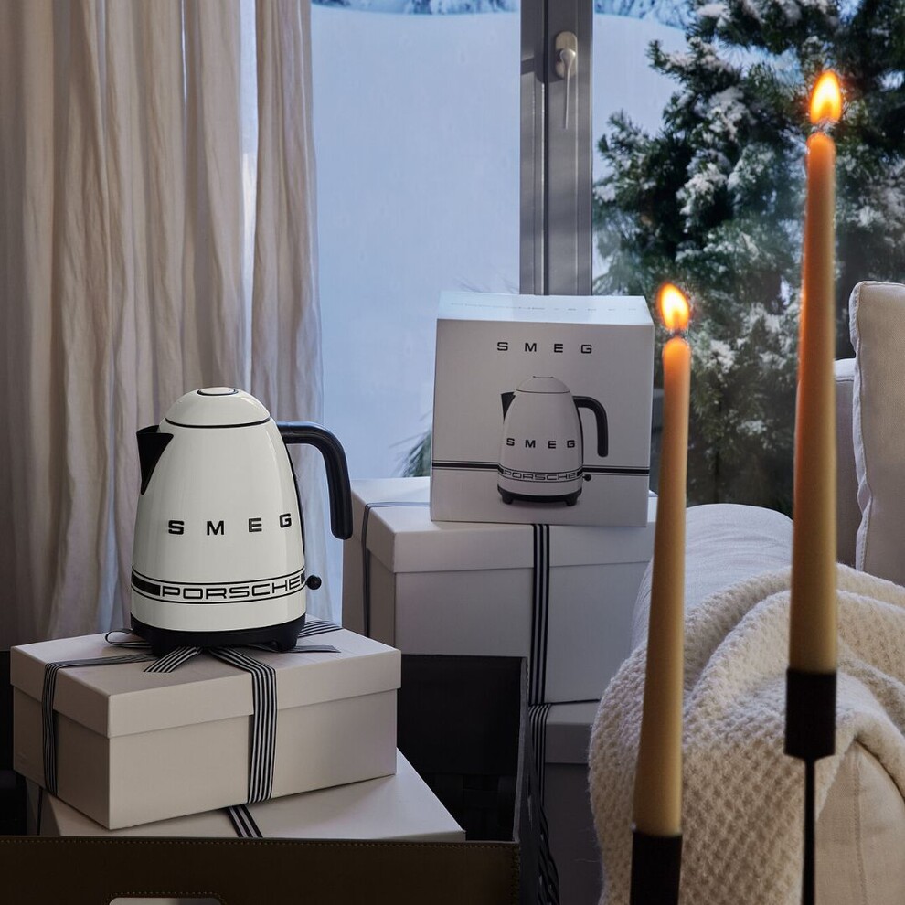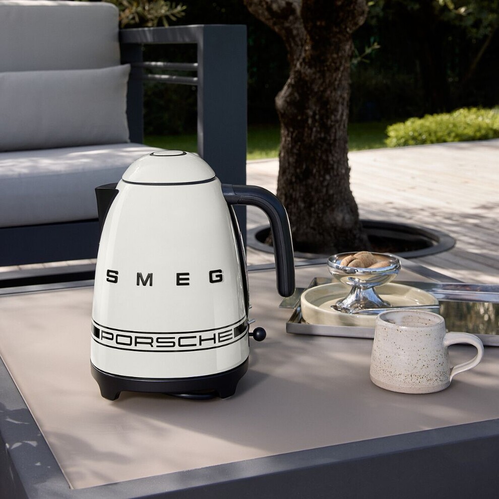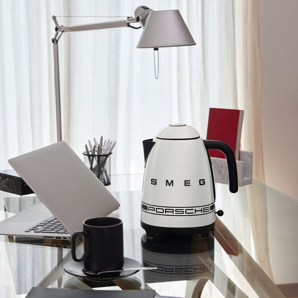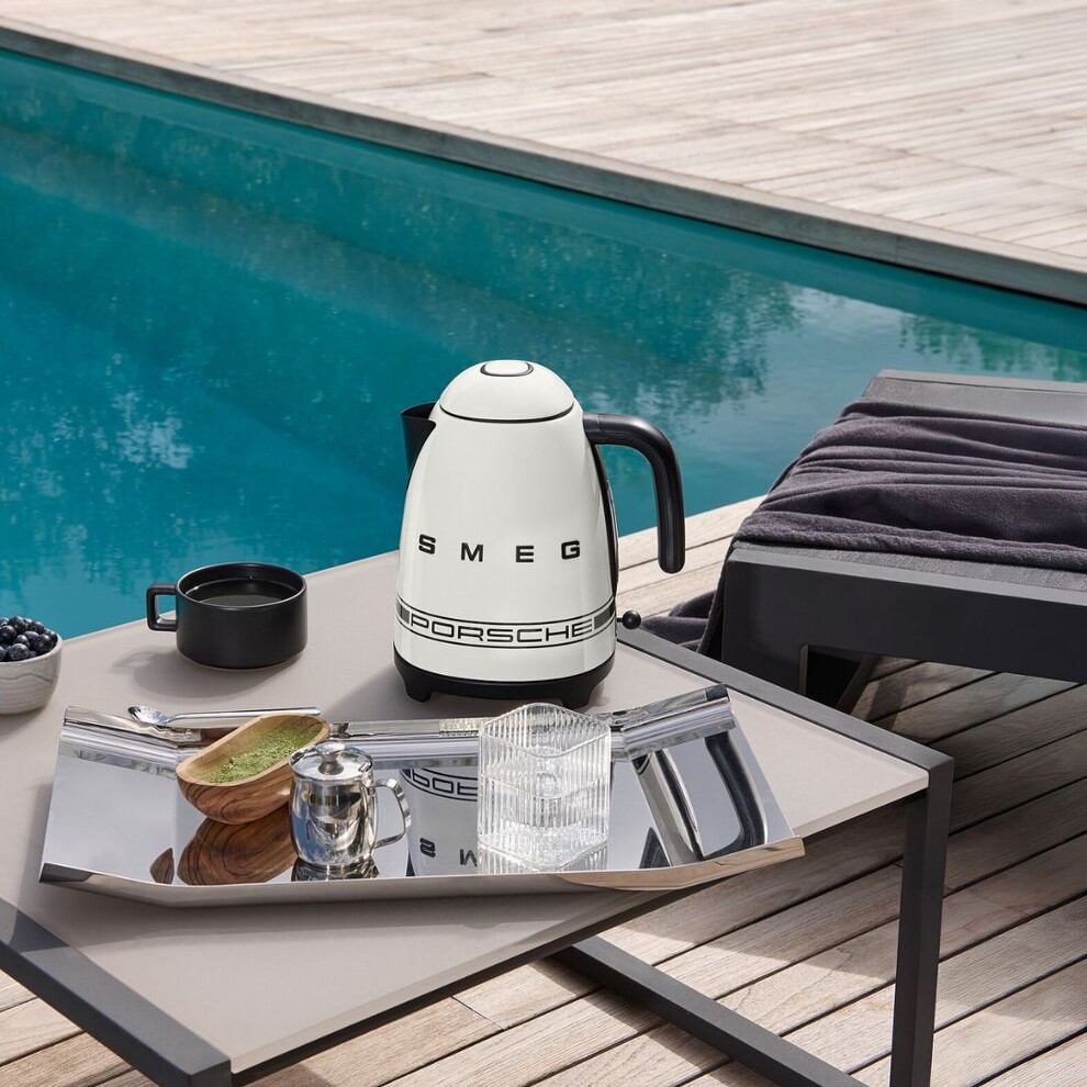 Alliant le look rétro des années 1950 de Smeg et le design épuré de Porsche, cette bouilloire marie esthétique et fonctionnalité. Les accents noirs mats et la bande signature Porsche créent un objet au caractère unique pour votre cuisine.