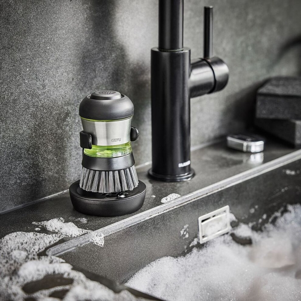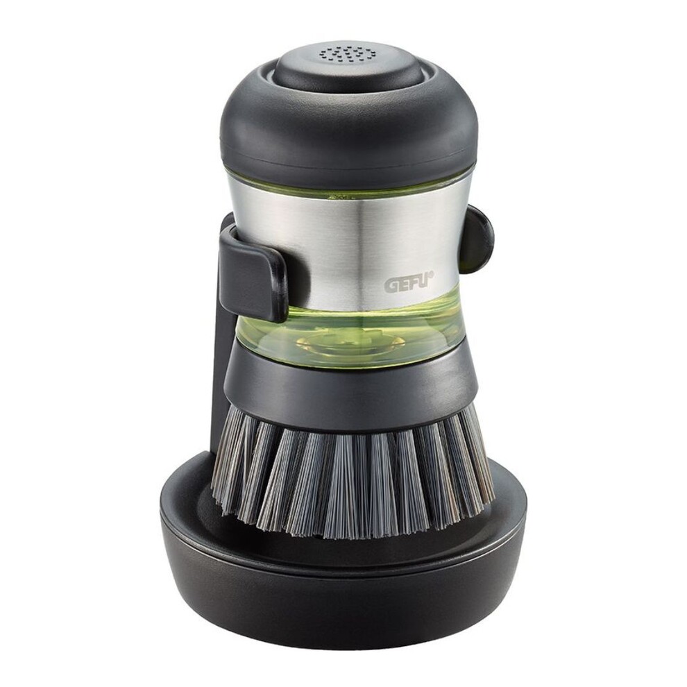 Brosse à récurer avec support égouttoir SWIFT. Fini la corvée de vaisselle ! Grâce à sa brosse en nylon robuste, cette brosse nettoie efficacement et en douceur les casseroles et ustensiles les plus sales. Le distributeur de liquide vaisselle intégré permet une distribution parfaite et contrôlée d’une simple pression, pour une vaisselle brillante et impeccable. Le support égouttoir inclus assure un séchage optimal de la brosse tout en gardant votre plan de travail propre et bien rangé.