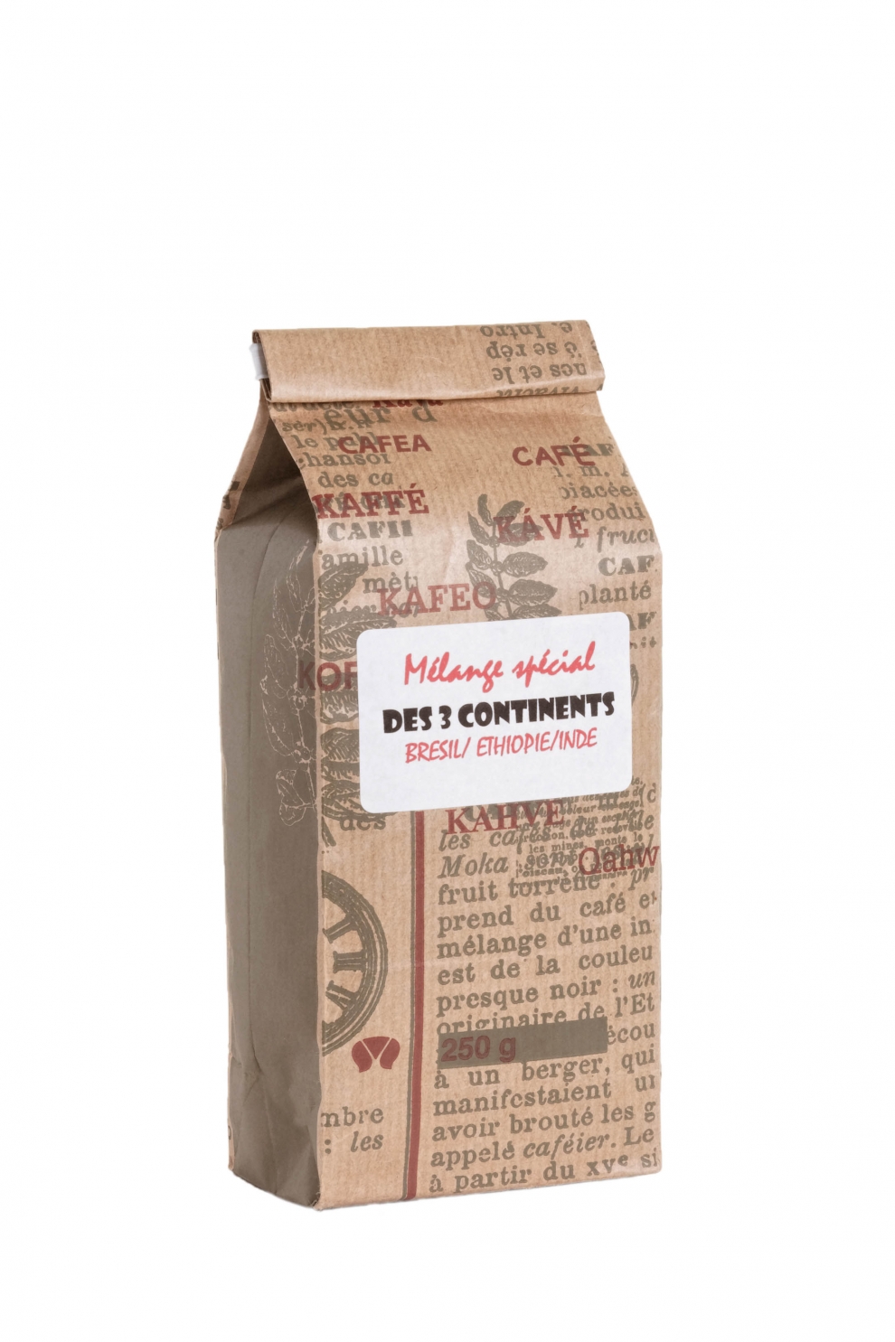 Café : 3 continents mélange corsé / fruité : Brésil / Ethiopie / Inde
