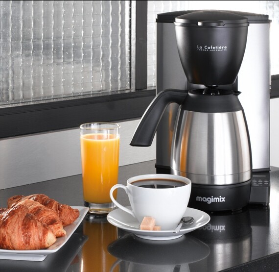 Cafetière filtre verseuse isotherme Magimix. Elle permet de préparer à tout moment un café chaud et pour longtemps.