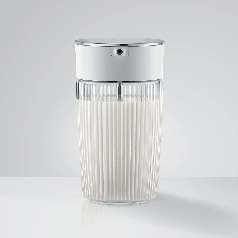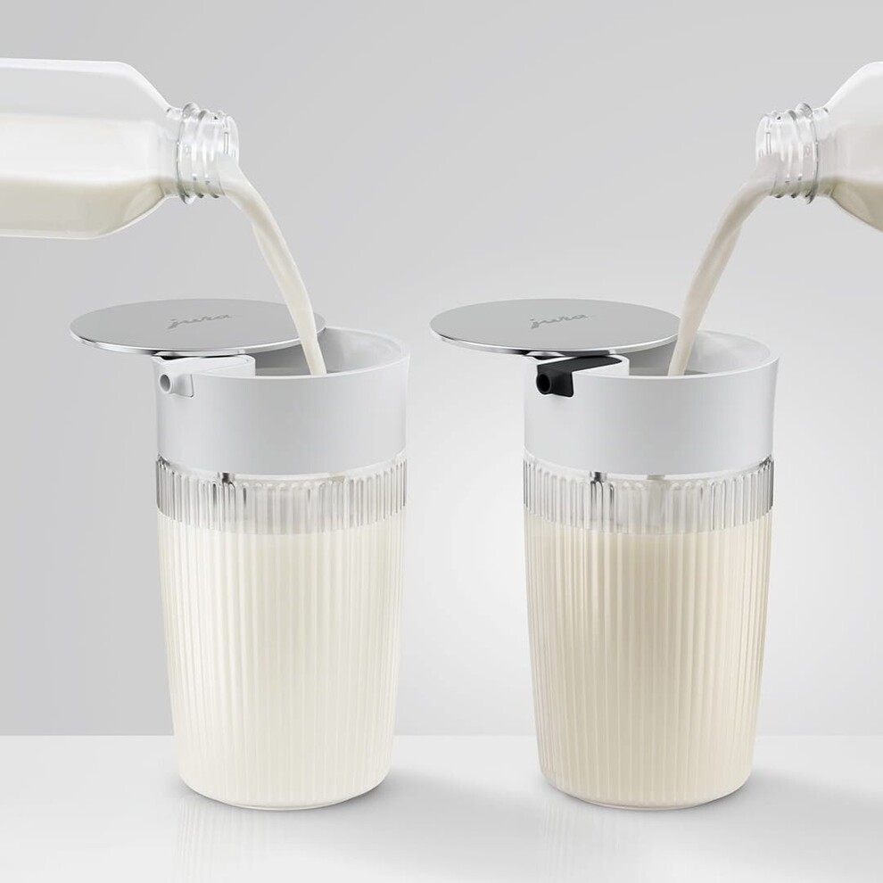 Que ce soit du lait ou une boisson végétale, les adaptateurs en silicone inclus permettent de signaler facilement le contenu de la carafe. Disponible en blanc et en noir, elle est à la fois pratique et stylée.