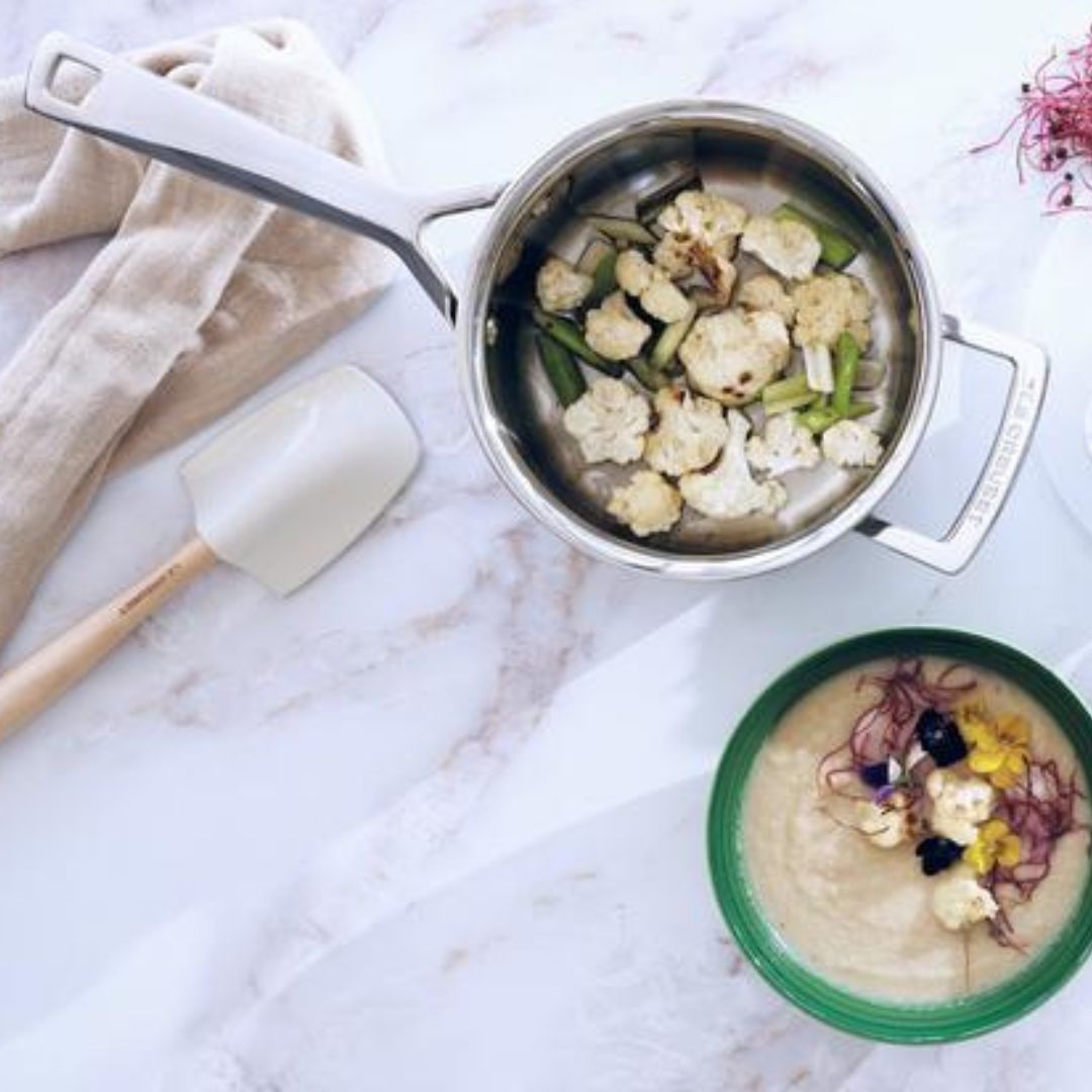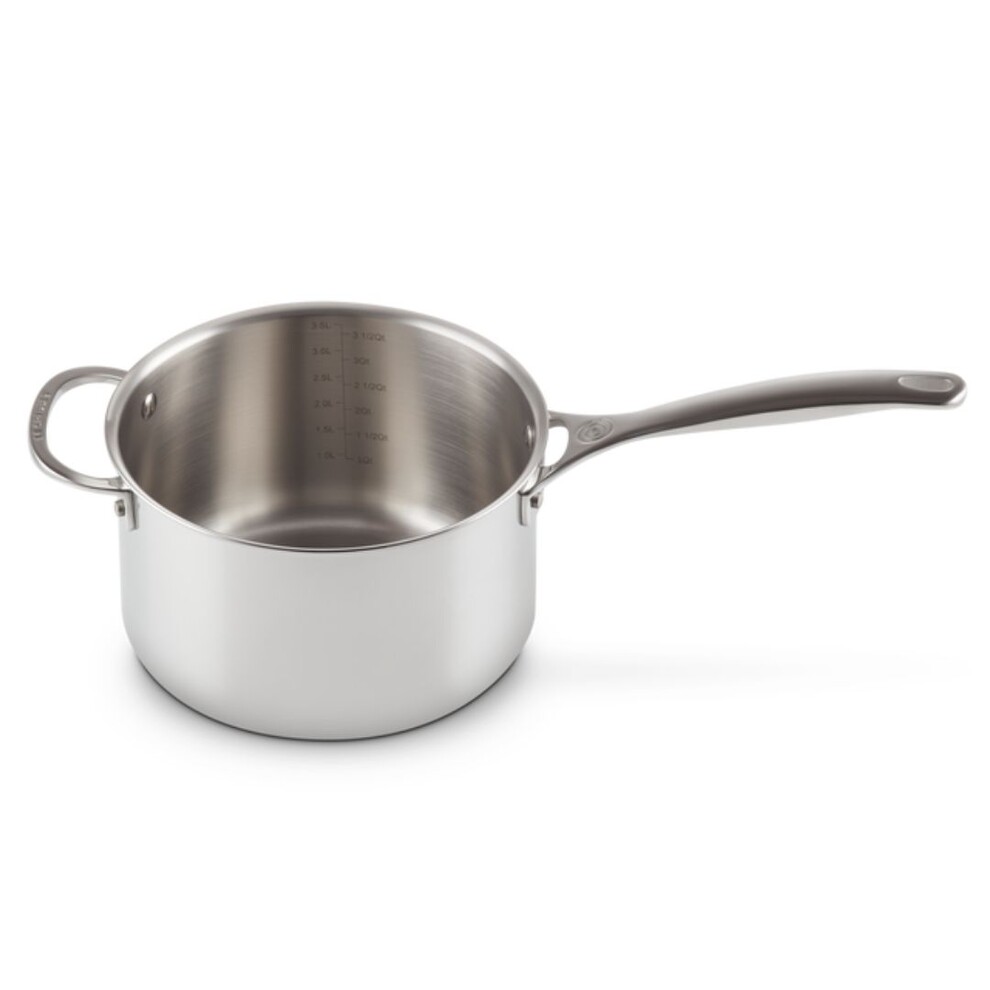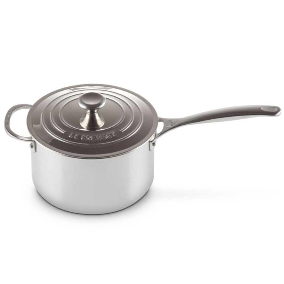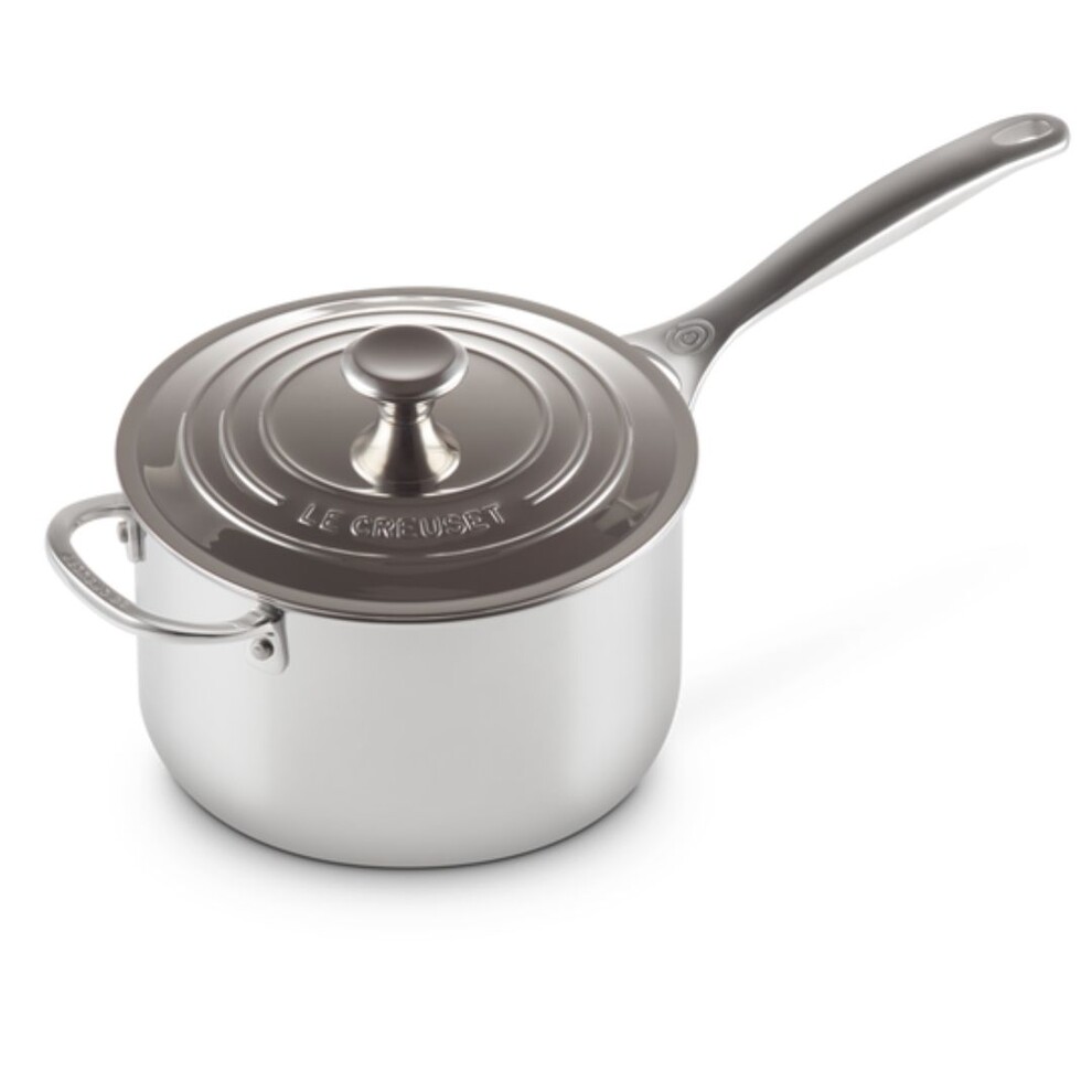 La casserole en inox de la marque Le Creuset est revêtue de 3 couches d'inox et d'aluminium, ce qui permet une optimisation de l’homogénéité de la chaleur pour une cuisson parfaite.