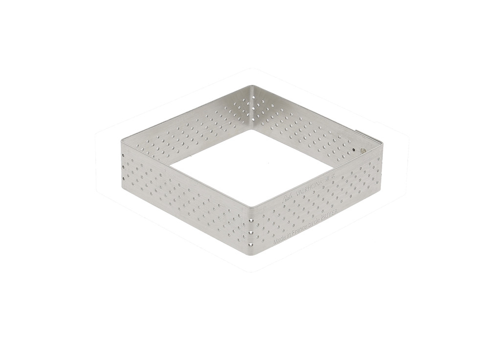 Cercle à tarte perforé en acier inoxydable développé en partenariat avec l’Ecole du Grand Chocolat Valrhona. Idéal pour les tartes, tartelettes ou entremets carrés.
