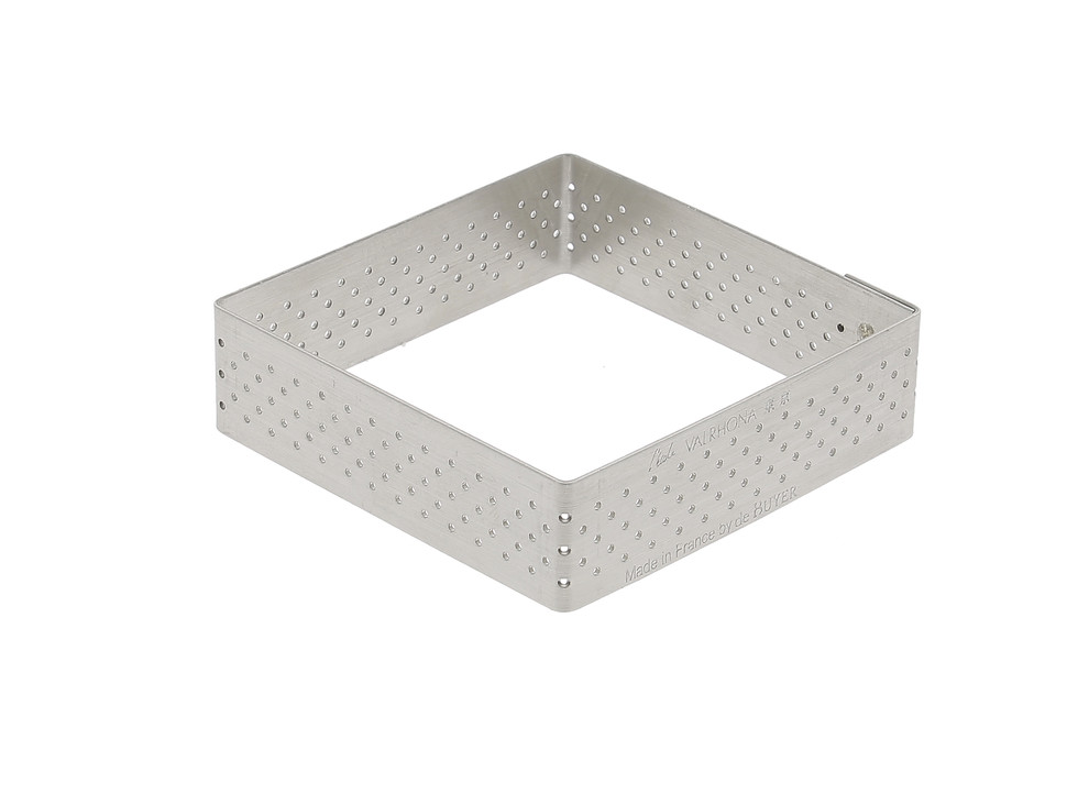 Cercle à tarte perforé en acier inoxydable développé en partenariat avec l’Ecole du Grand Chocolat Valrhona. Idéal pour les tartes, tartelettes ou entremets carrés.