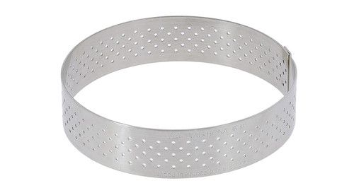 Cercle à tarte perforé rond en acier inoxydable idéal pour les tartes, tartelettes, tourtes et quiches, développé en partenariat avec l’Ecole du Grand Chocolat Valrhona.
