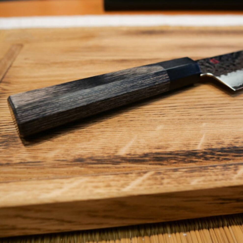 Les lames des couteaux Kasumi kuro possèdent un tranchant rasoir exceptionnel. Elles sont forgées dans un acier VG10 à fort taux de carbone (1%). Cet acier atteint une dureté de 61-62°HCR et permet d’affutage très fin pour un fil extrêmement tranchant.