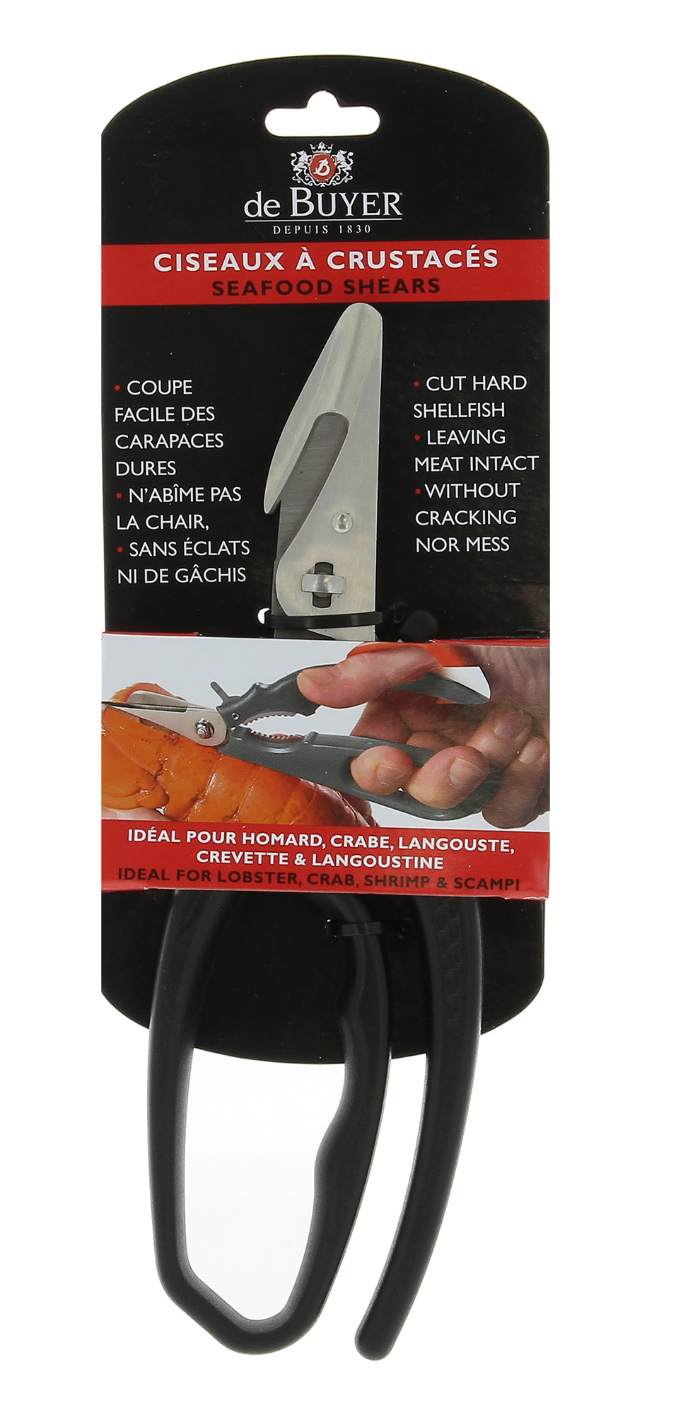 La paire de ciseaux à crustacés DE BUYER est un ustensile de cuisine 2 en 1 vous permettant de casser les pinces de vos crustacés et couper les carapaces durs de vos crevettes, langoustes, homards, crabes et langoustines. Grace à ces ciseaux et à leur tranchant efficace, vous pourrez procéder à une découpe parfaite de toutes les coquilles sans abîmer la chair, ni faire d’éclat ou de gâchis.