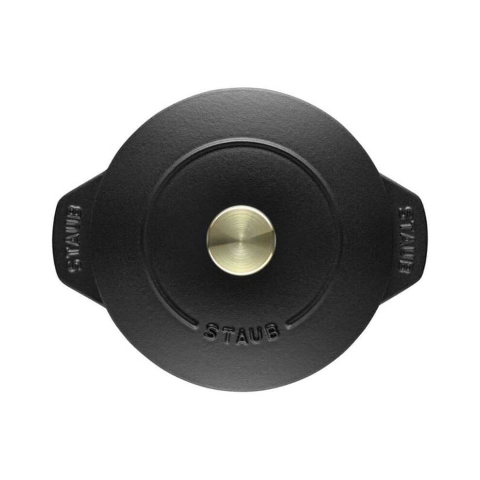 Cocotte en fonte ronde noire 16 cm avec couvercle a bouton laiton