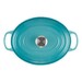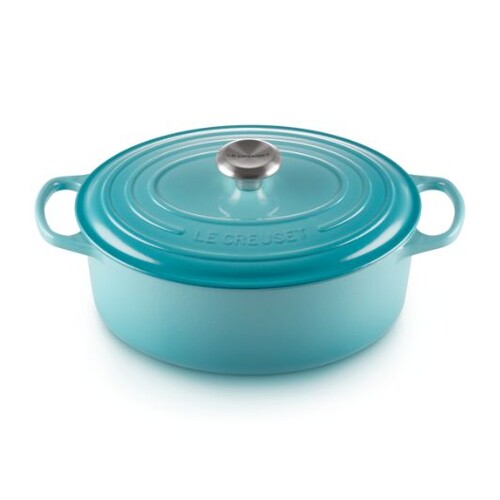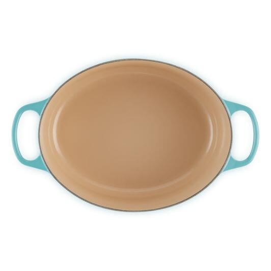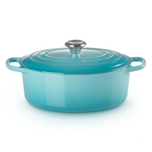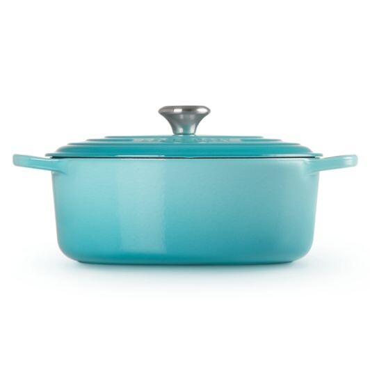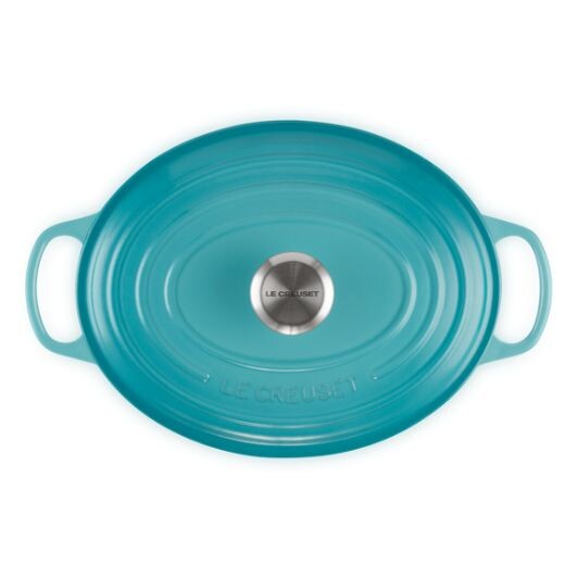 La cocotte en fonte Le Creuset ovale 31 cm coloris bleu Marseille (finition brillante) possède une capacité de 6,3 litres.