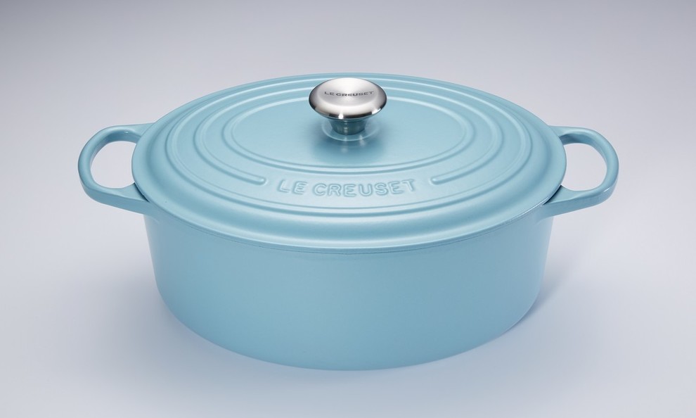 La cocotte en fonte Le Creuset ovale 31 cmbleu riviera possède une capacité de 4,7 litres.