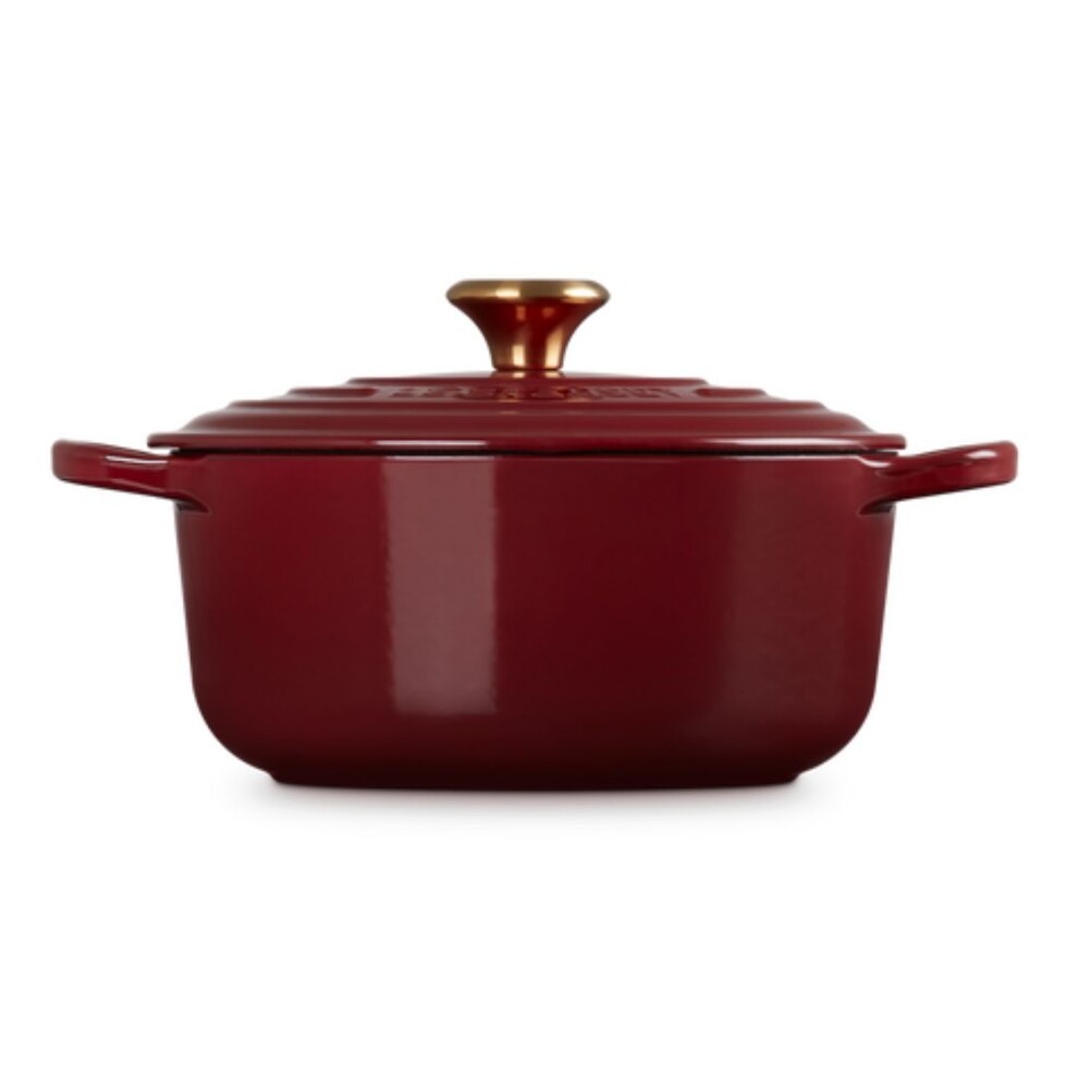 Cocotte ronde 20 cm Rouge Garnet bouton doré