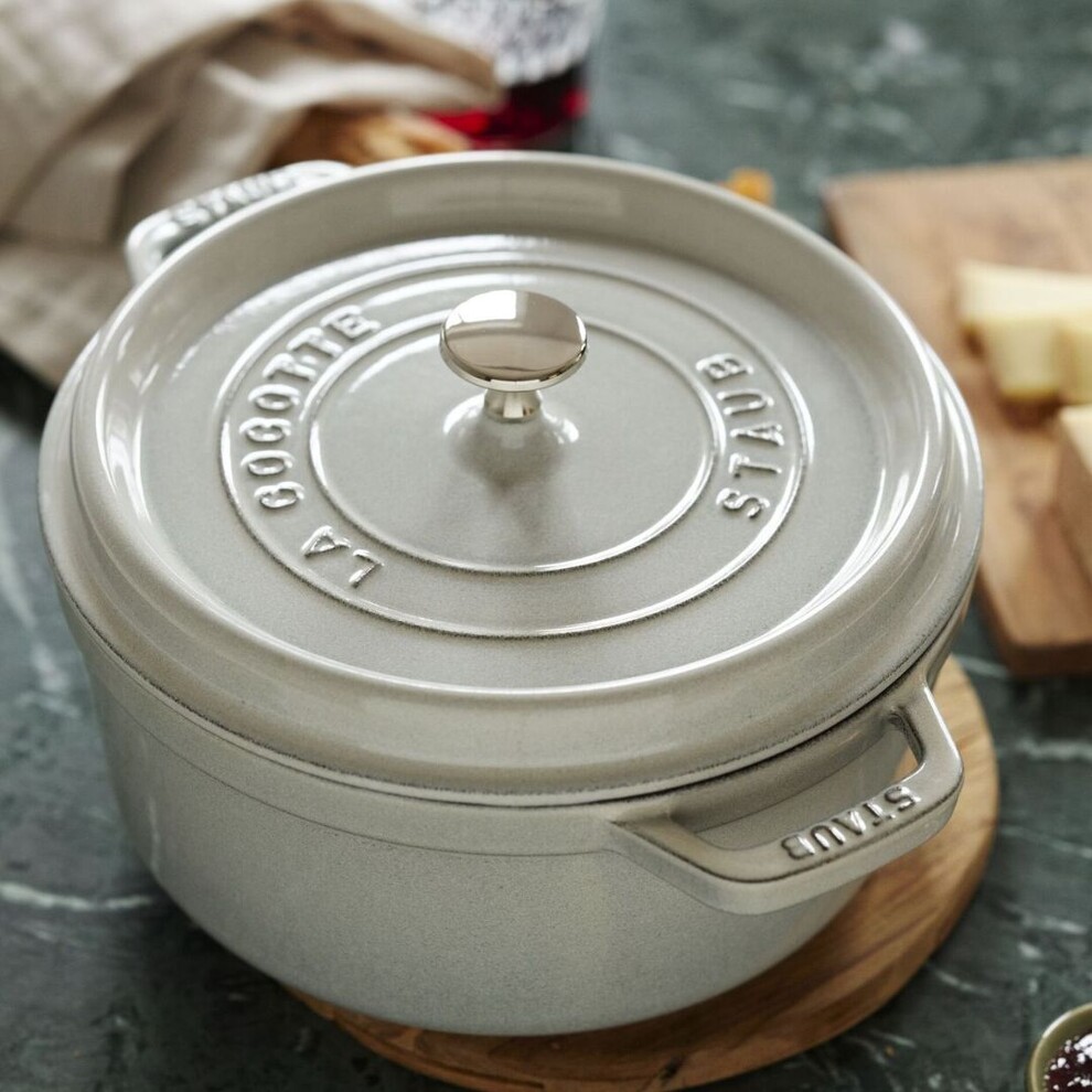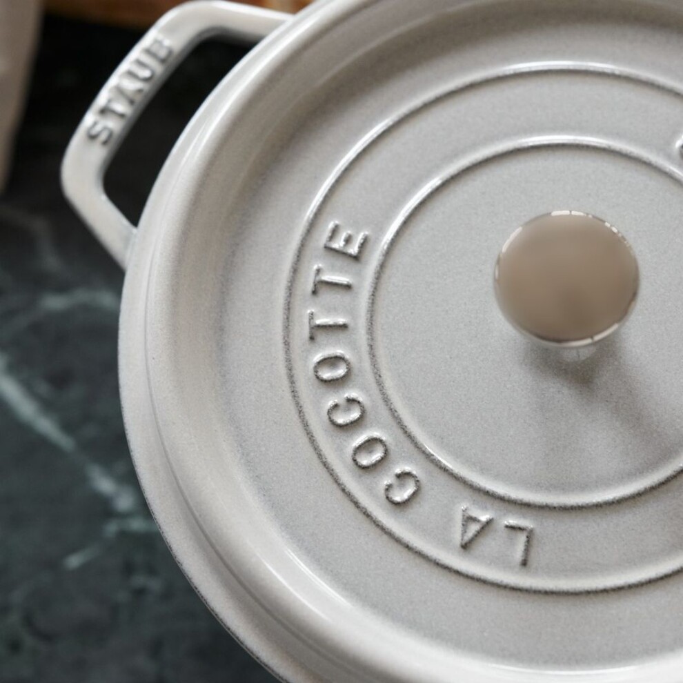 Cette cocotte STAUB en fonte de 20 cm est adaptée pour 2 personnes, idéale pour préparer des plats mijotés, des rôtis, de la volaille et même du pain.