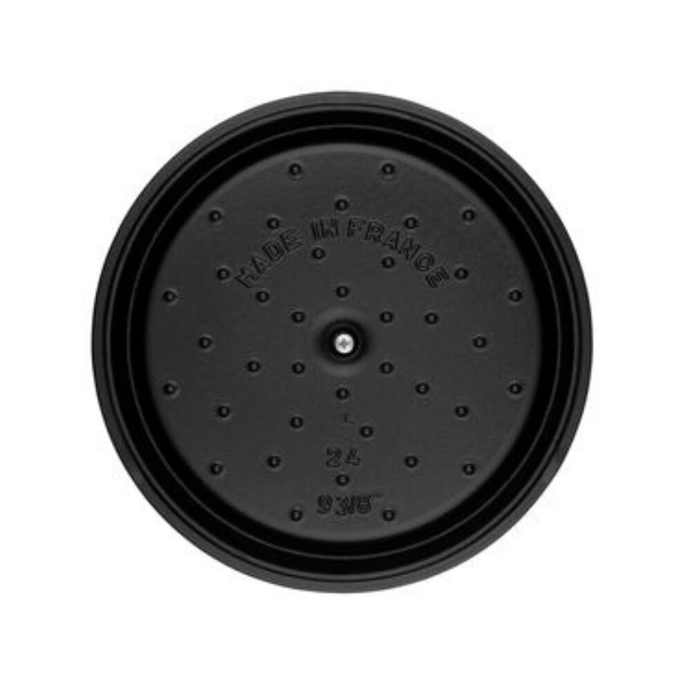 L’émaillage noir mat de l’intérieur de la cocotte fait office de structure de type micro-grill afin d’offrir de succulents arômes légèrement rôtis, ainsi que des mets tendres et juteux. De plus, cette surface intérieure est extrêmement résistance aux rayures et est facilement nettoyable après usage.
