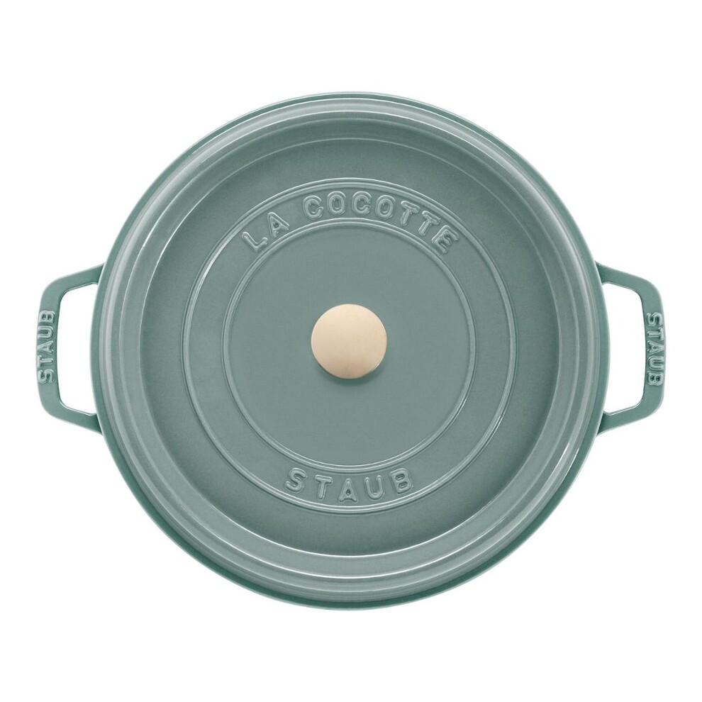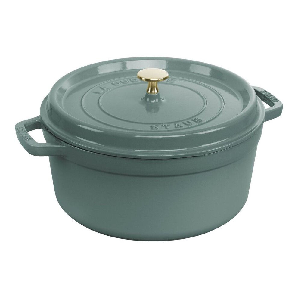 Cette cocotte STAUB en fonte émaillée de 26 cm est adaptée pour 4 ou 5 personnes, idéale pour préparer des plats mijotés, des rôtis, de la volaille et même du pain.